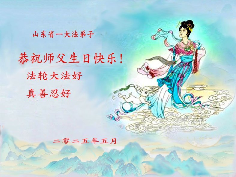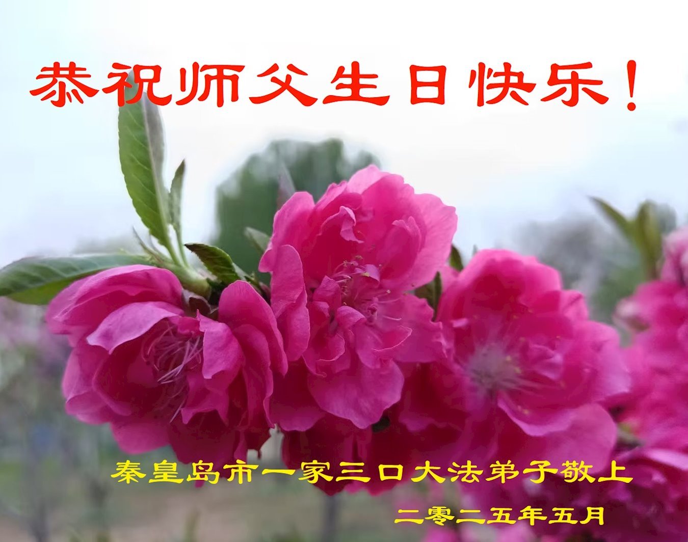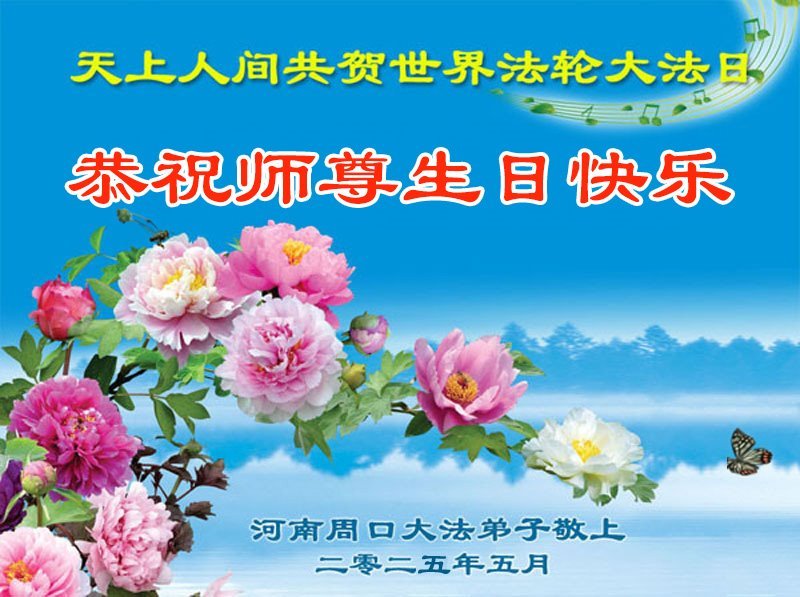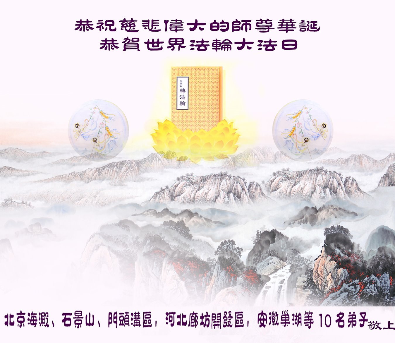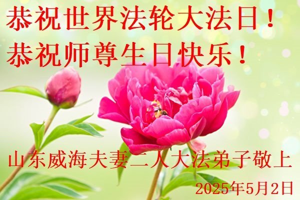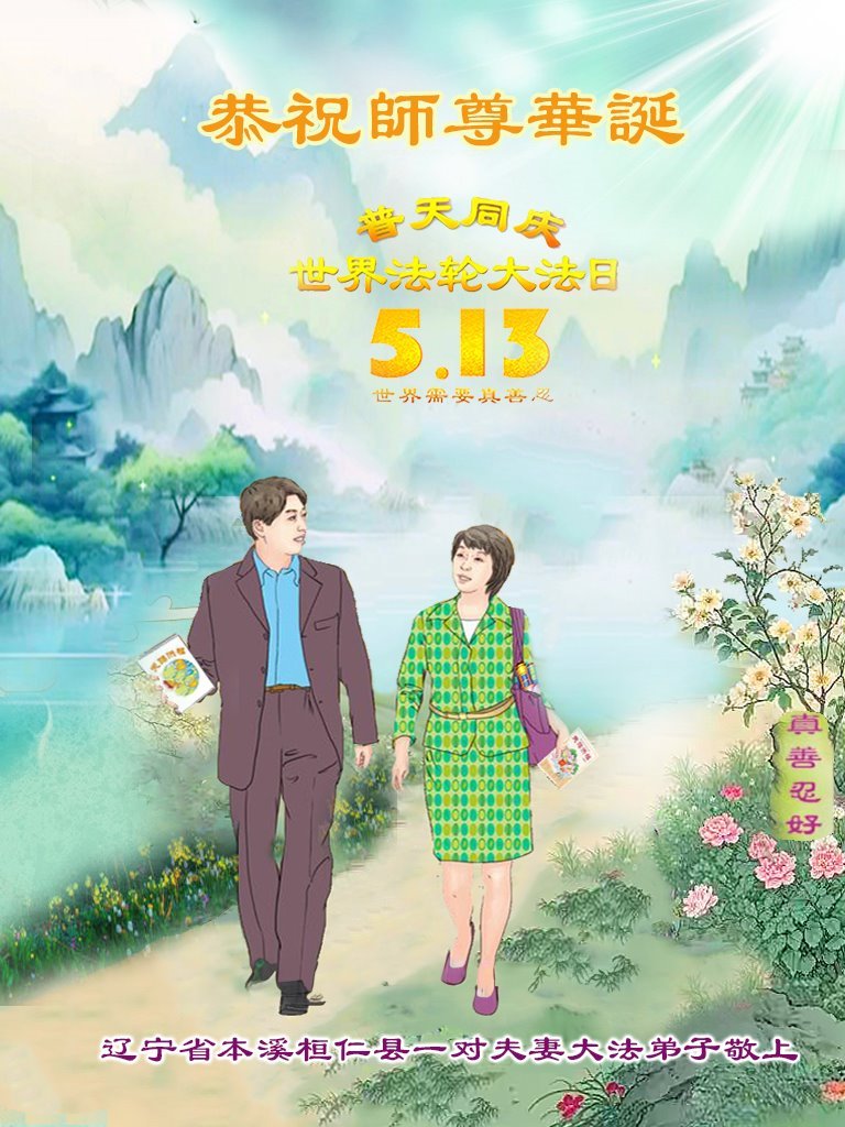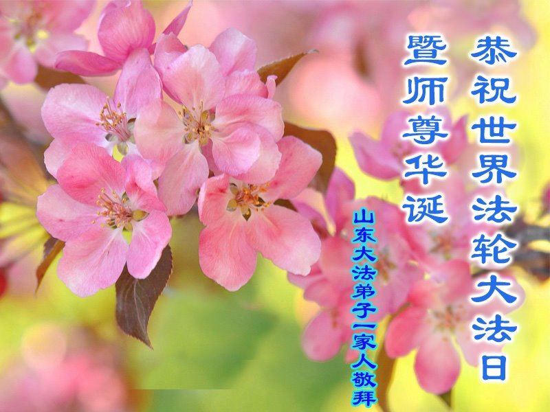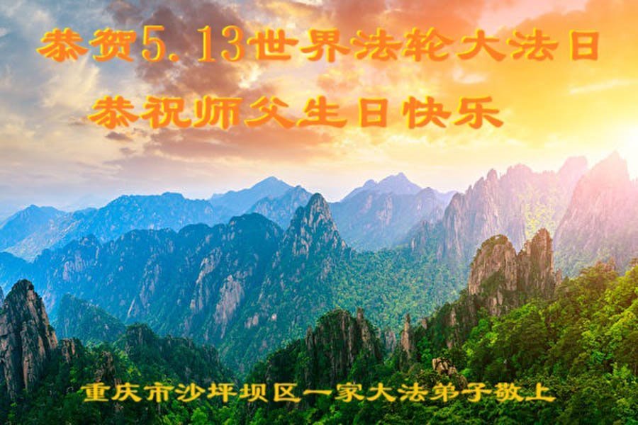 我们是九九年七二零之前得法的老弟子,历经种种风雨魔难,更加坚信大法,精進实修,以报师恩。在五一三世界法轮大法日来临之际,恭祝师尊生日快乐!我们想念师尊,盼望师尊早日回国,荣归故里。弟子敬拜师尊!谨以以下小诗敬献师尊。
