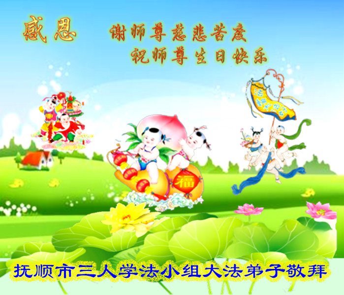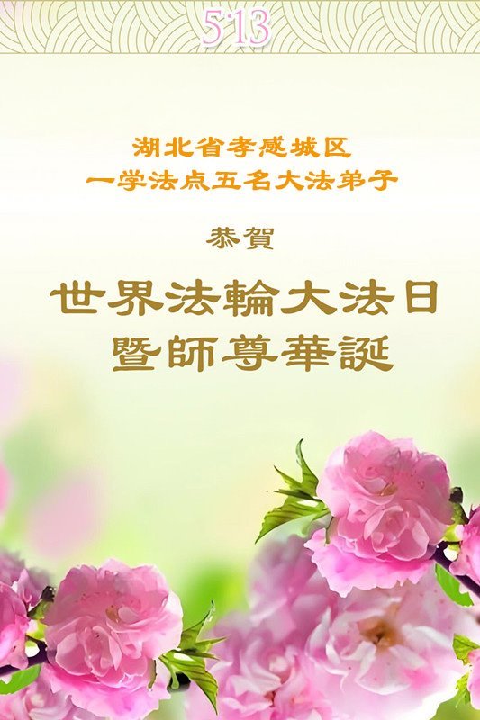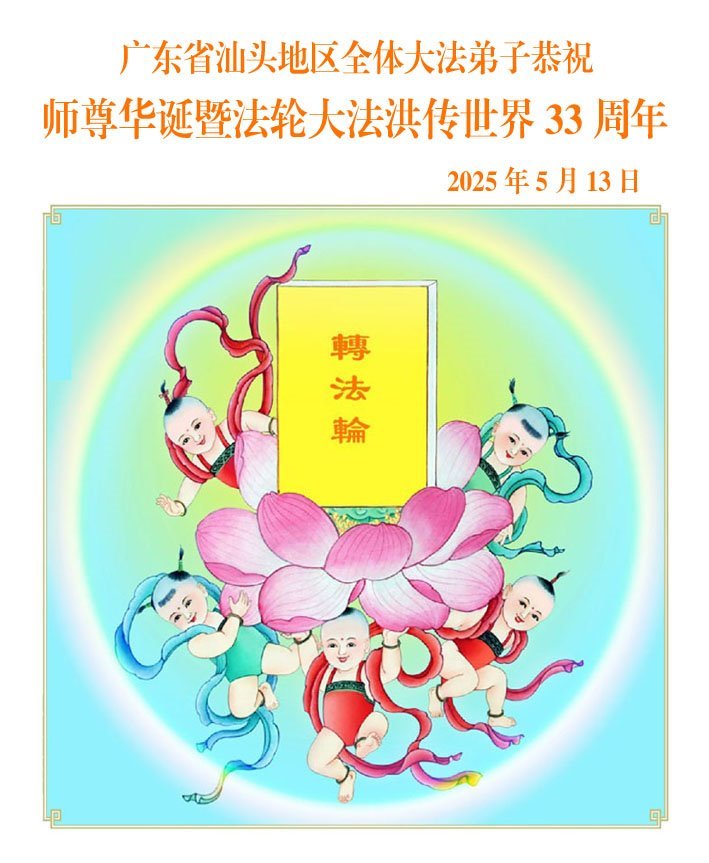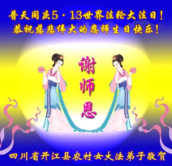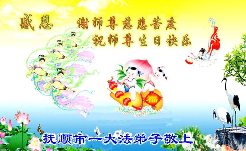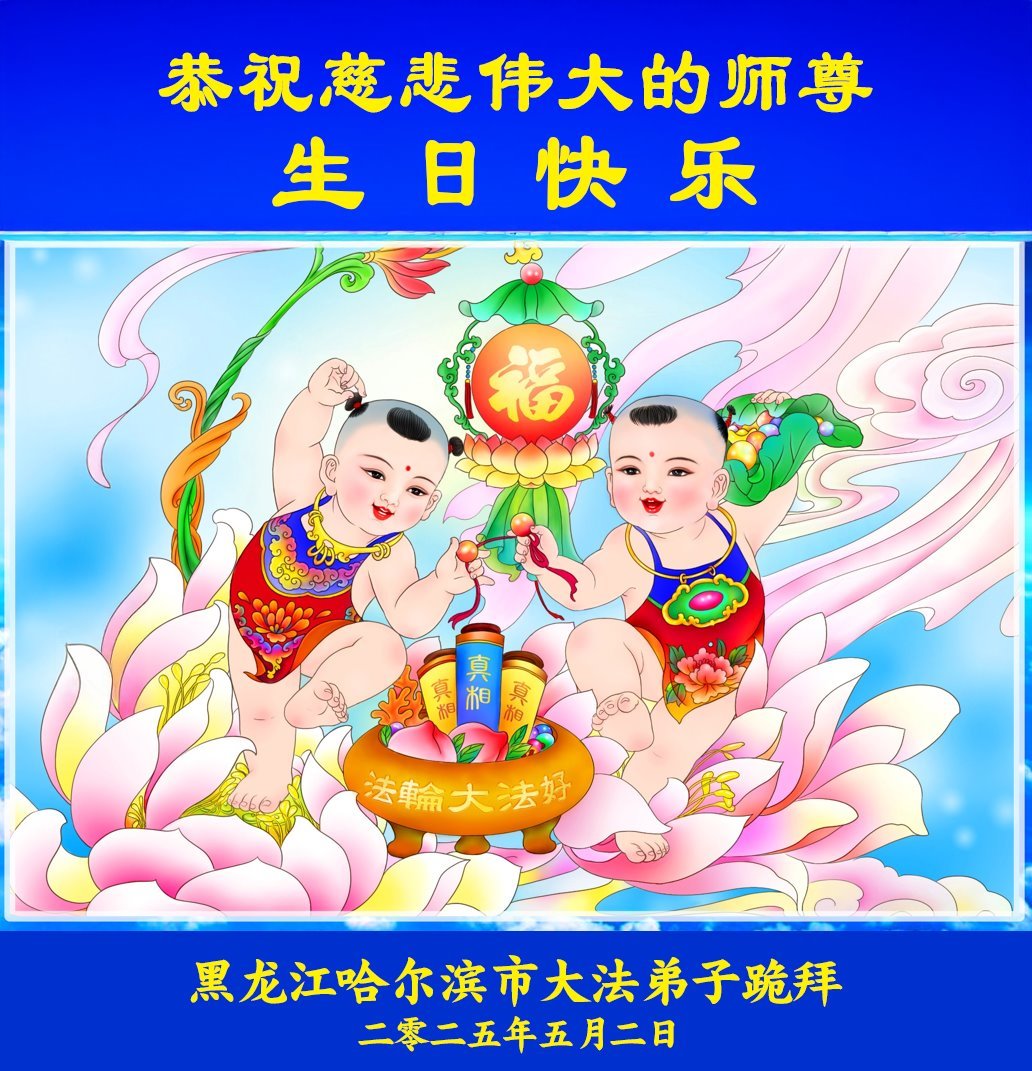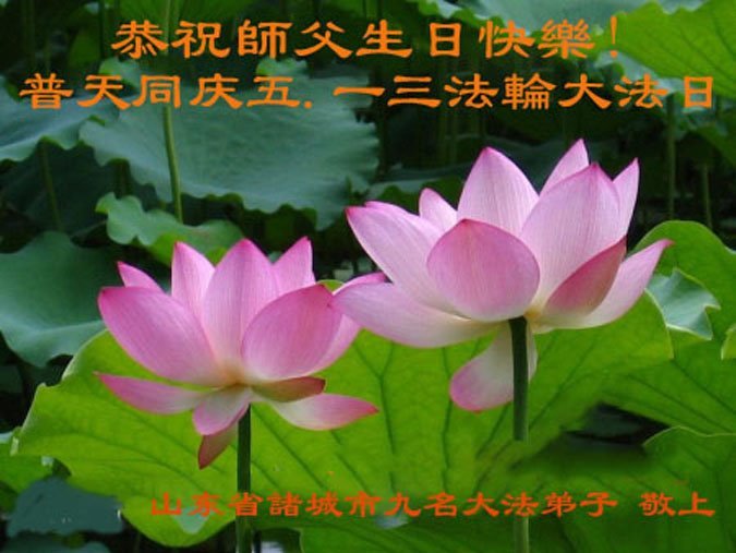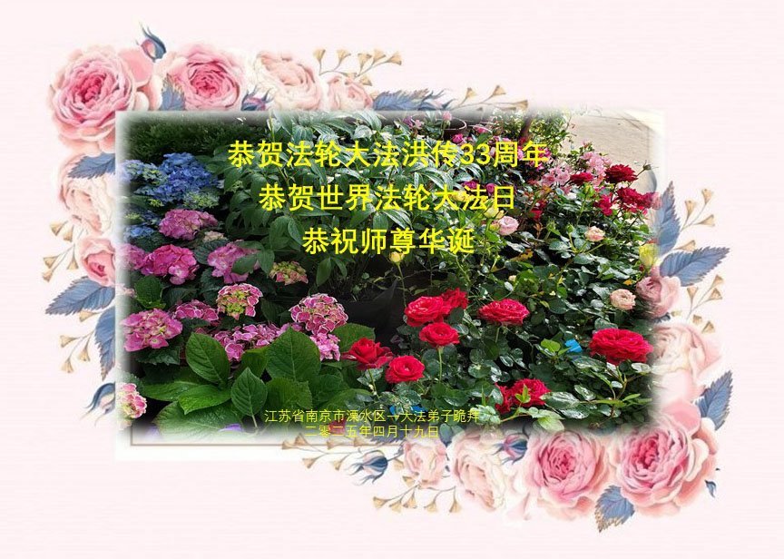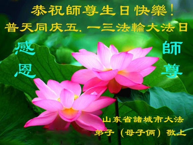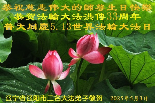 我们是九九年七二零之前得法的老弟子,历经种种风雨魔难,更加坚信大法,精進实修,以报师恩。在五一三世界法轮大法日来临之际,恭祝师尊生日快乐!我们想念师尊,盼望师尊早日回国,荣归故里。弟子敬拜师尊!谨以以下小诗敬献师尊。