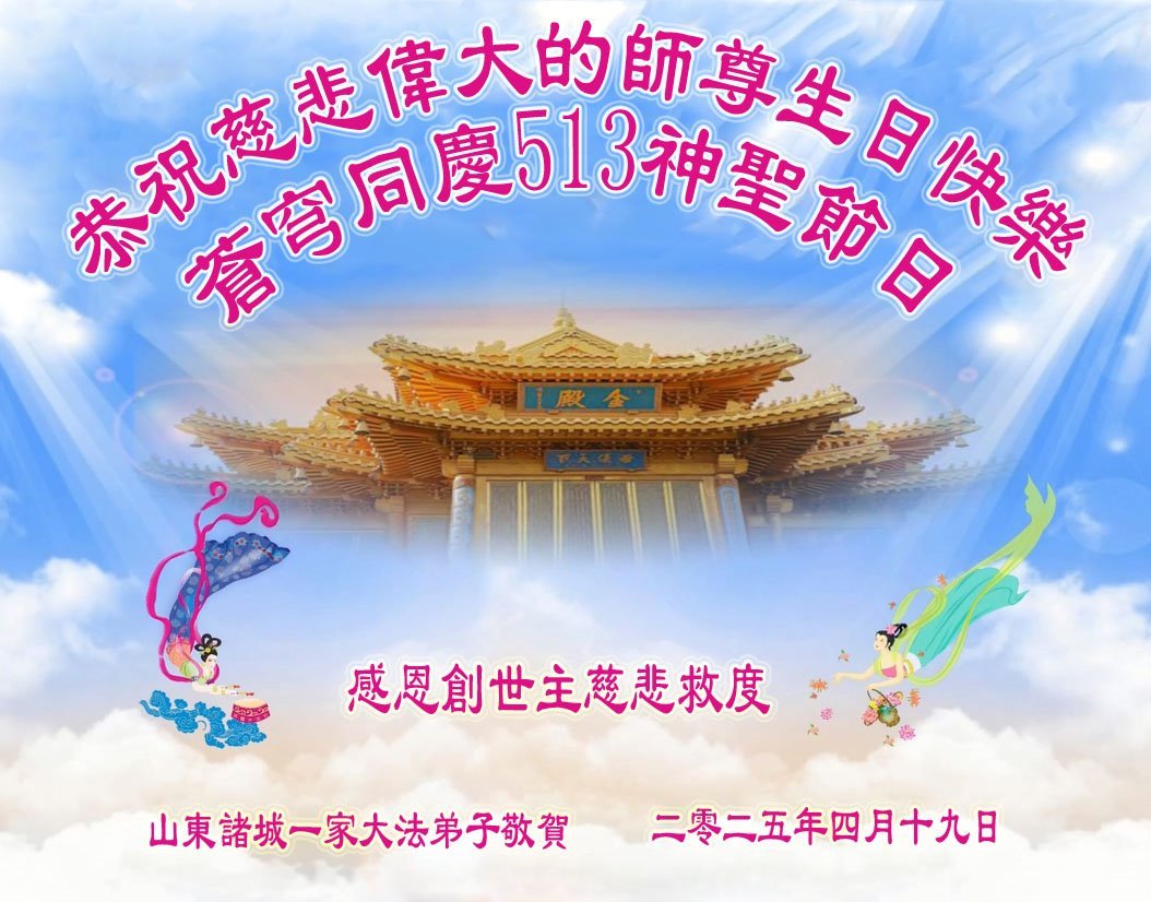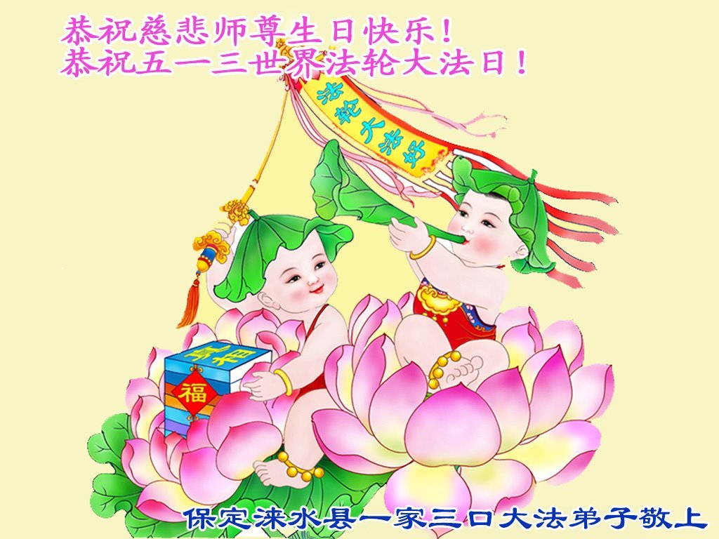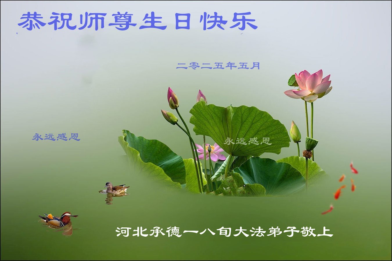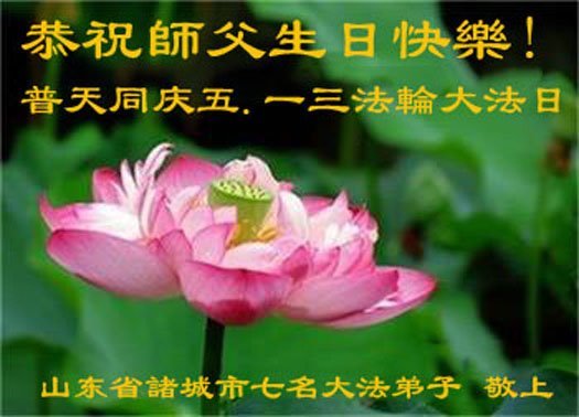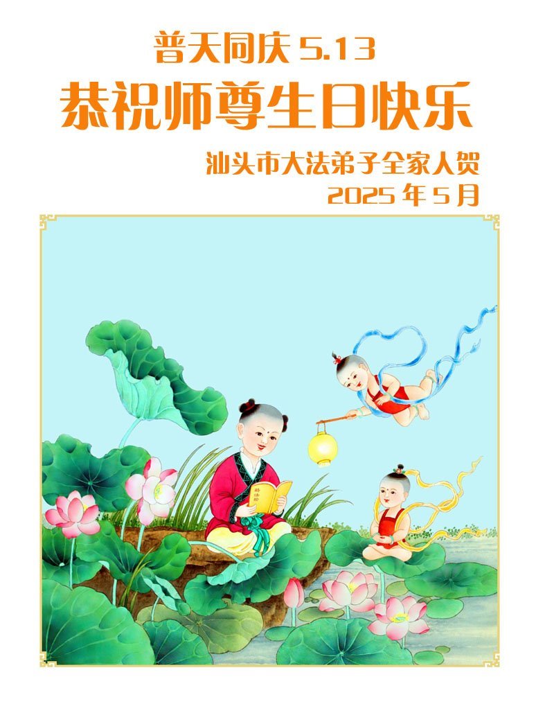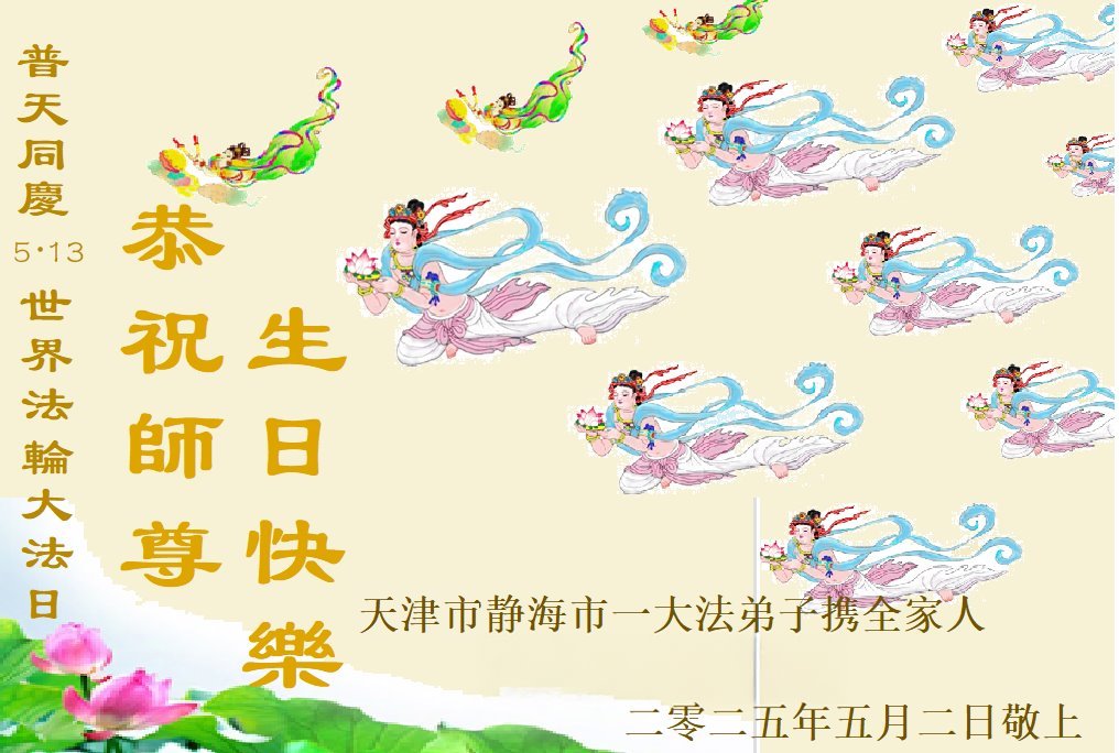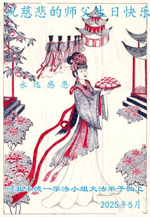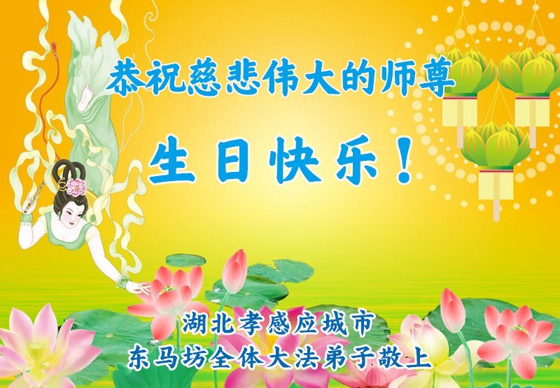 我们是九九年七二零之前得法的老弟子,历经种种风雨魔难,更加坚信大法,精進实修,以报师恩。在五一三世界法轮大法日来临之际,恭祝师尊生日快乐!我们想念师尊,盼望师尊早日回国,荣归故里。弟子敬拜师尊!谨以以下小诗敬献师尊。
