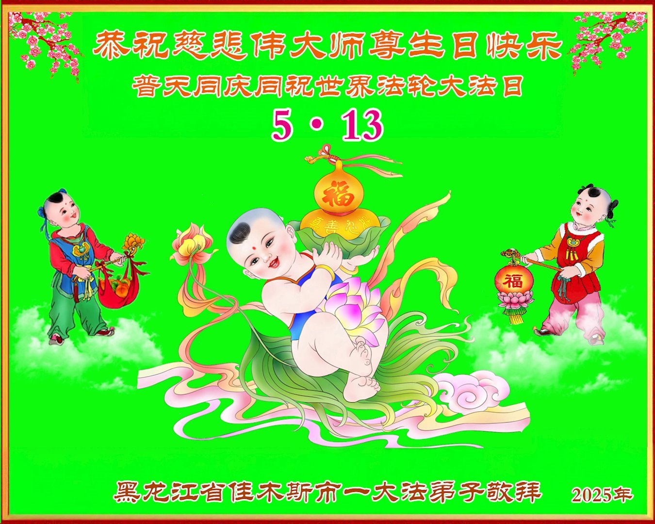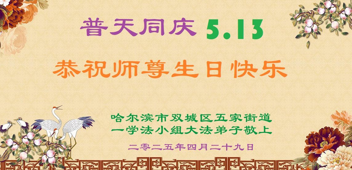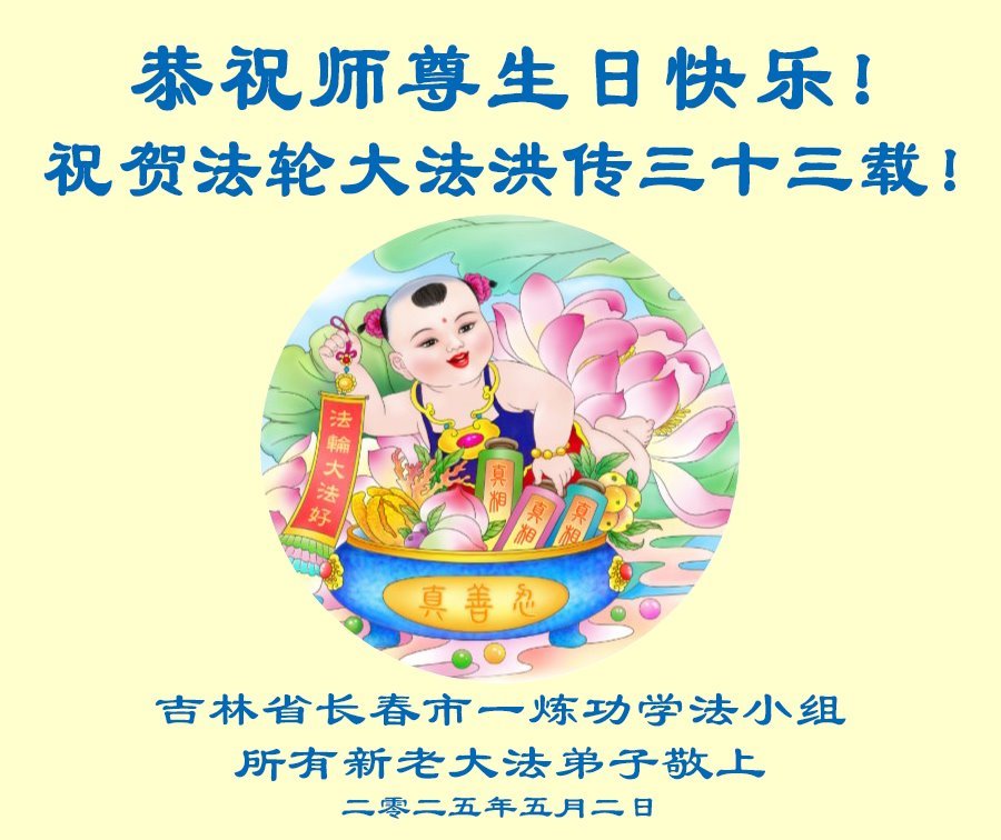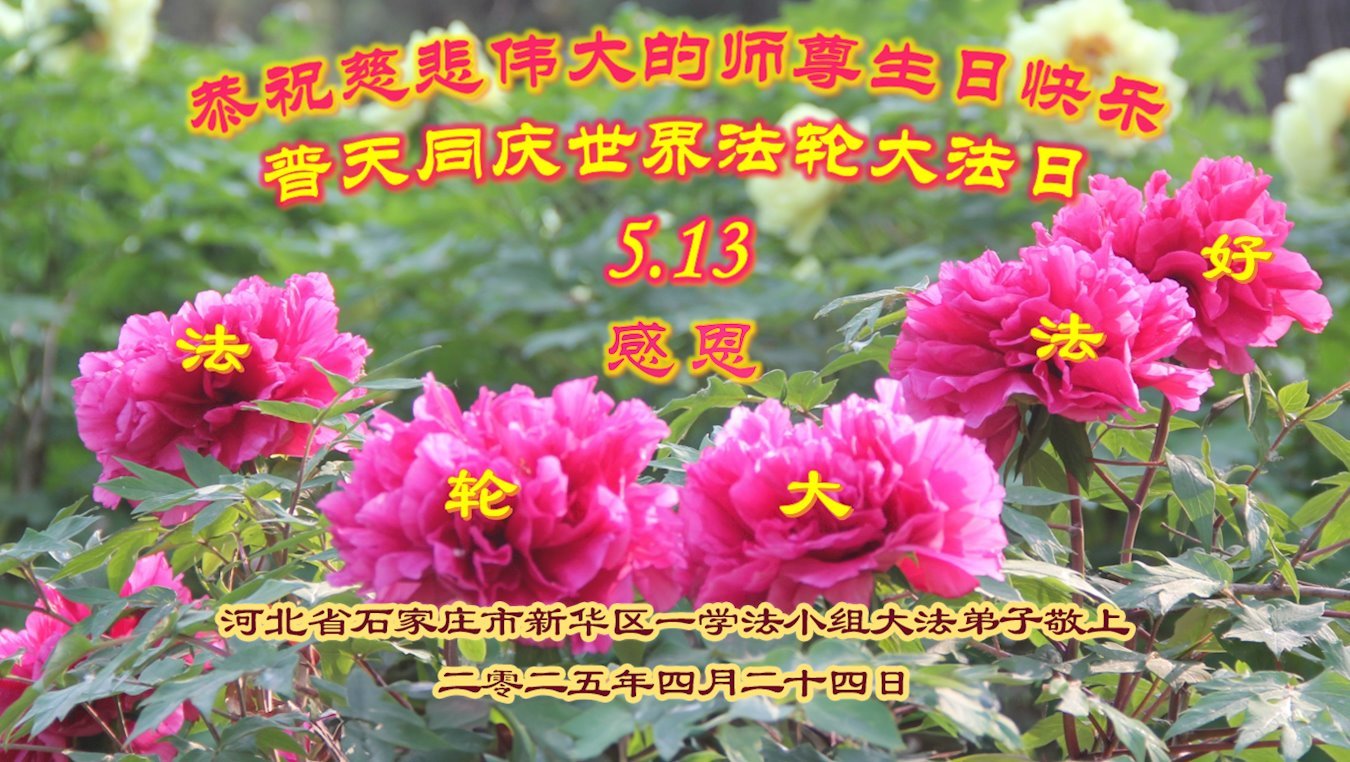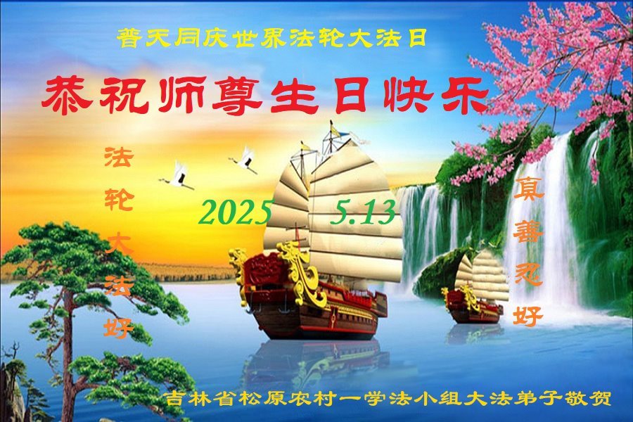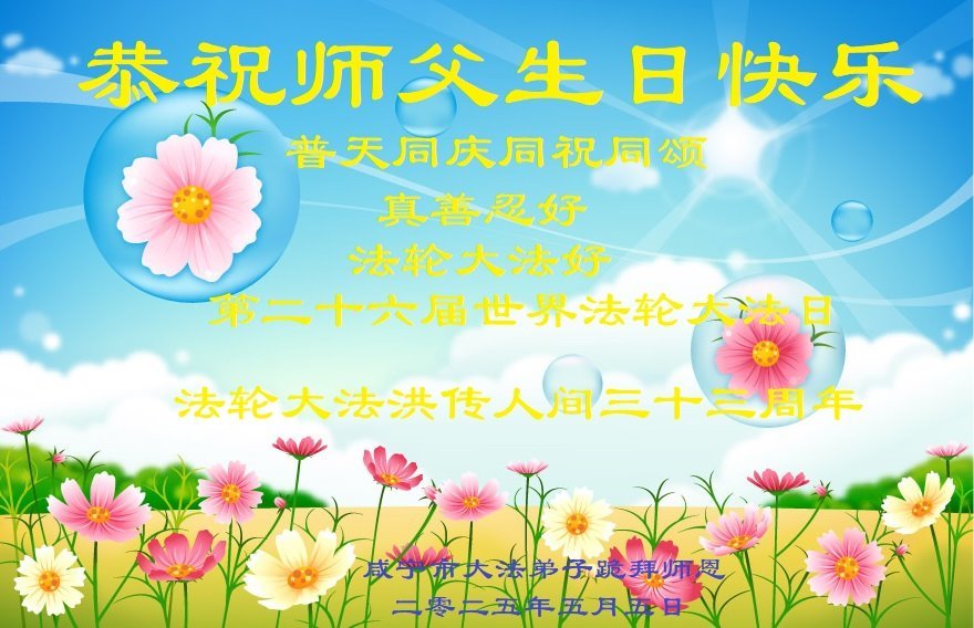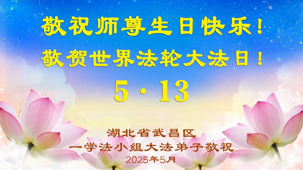 【明慧网二零二五年五月十一日】(明慧网记者综合报道)历经中共残酷迫害法轮功的二十六年,大法弟子们凭着对师尊的正信一路走过来了。中国各省各地都有学法小组,大法弟子开创环境每天静心学法炼功,按照真善忍实修自己,历经种种风雨魔难,依靠大法的指引不迷航。五月十三日,世界法轮大法日到来之际,中国各地学法小组的大法弟子们同庆同祝这神圣的日子,深深感念师尊的慈悲救度,恭贺师尊华诞。
