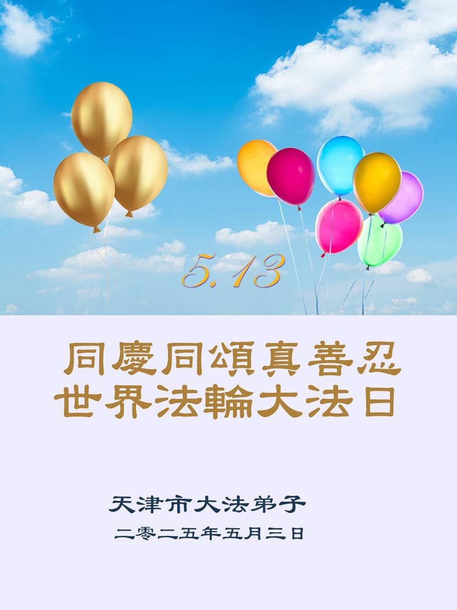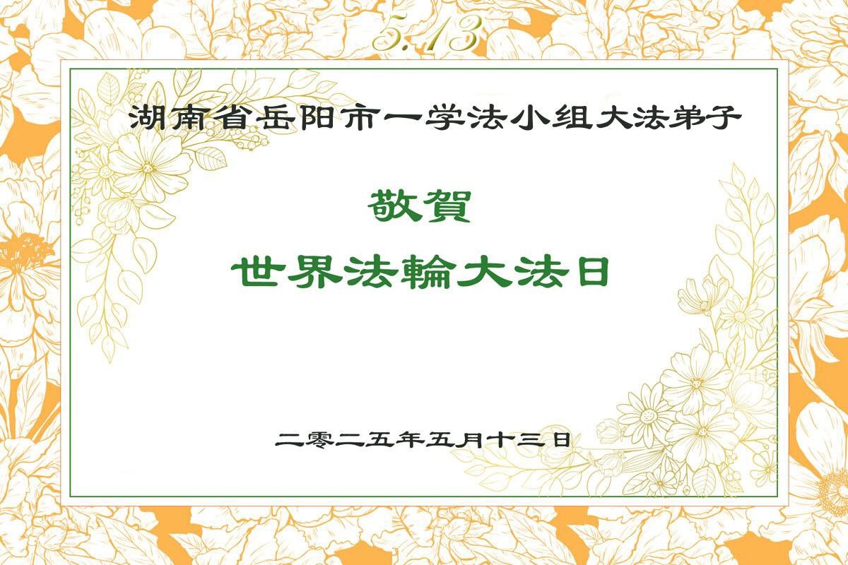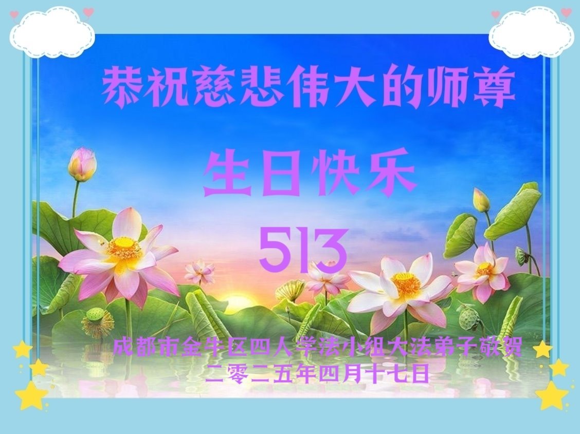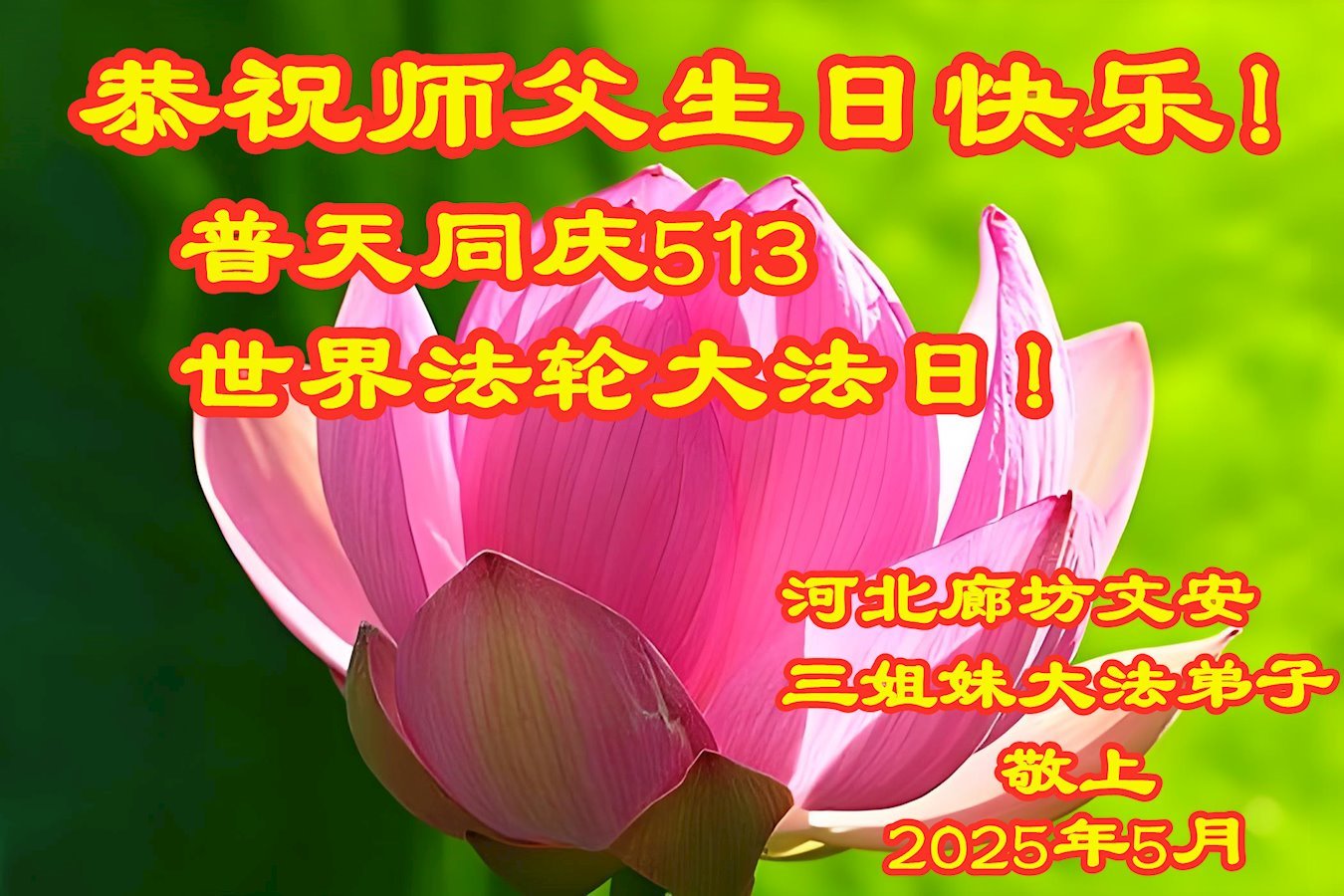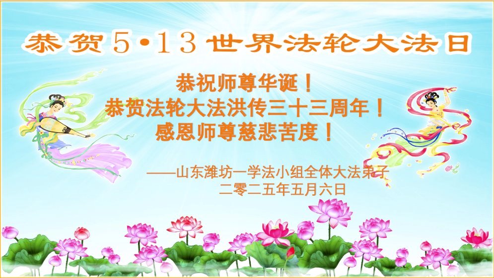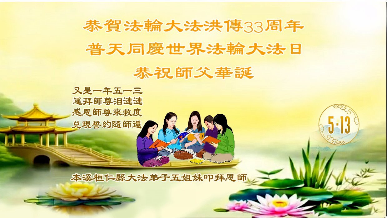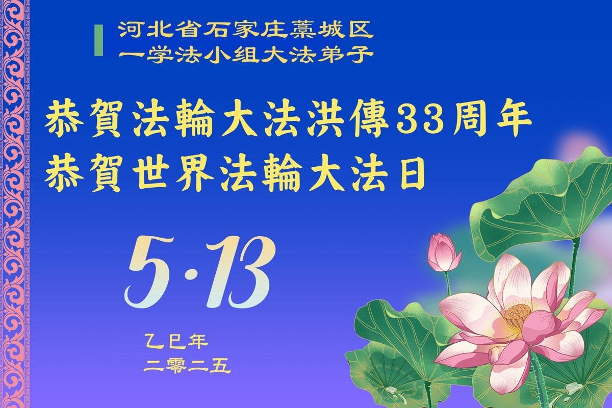 【明慧网二零二五年五月十一日】(明慧网记者综合报道)历经中共残酷迫害法轮功的二十六年,大法弟子们凭着对师尊的正信一路走过来了。中国各省各地都有学法小组,大法弟子开创环境每天静心学法炼功,按照真善忍实修自己,历经种种风雨魔难,依靠大法的指引不迷航。五月十三日,世界法轮大法日到来之际,中国各地学法小组的大法弟子们同庆同祝这神圣的日子,深深感念师尊的慈悲救度,恭贺师尊华诞。
