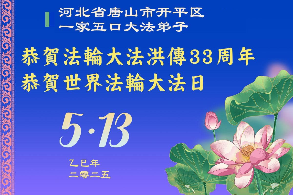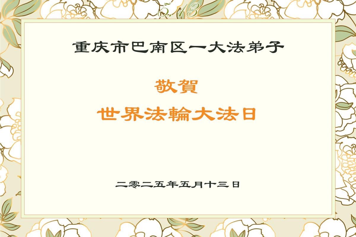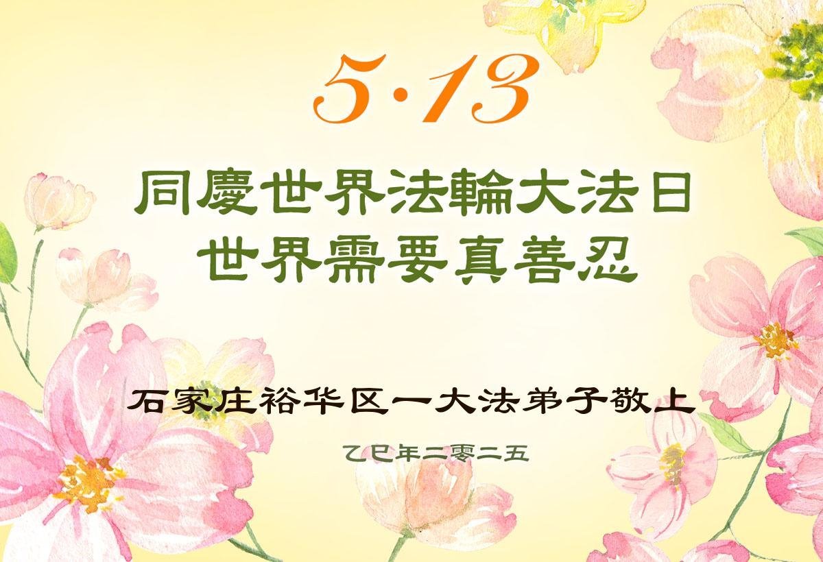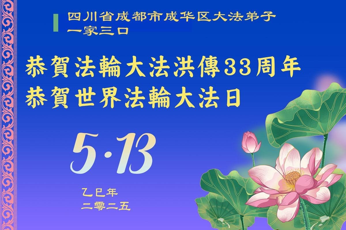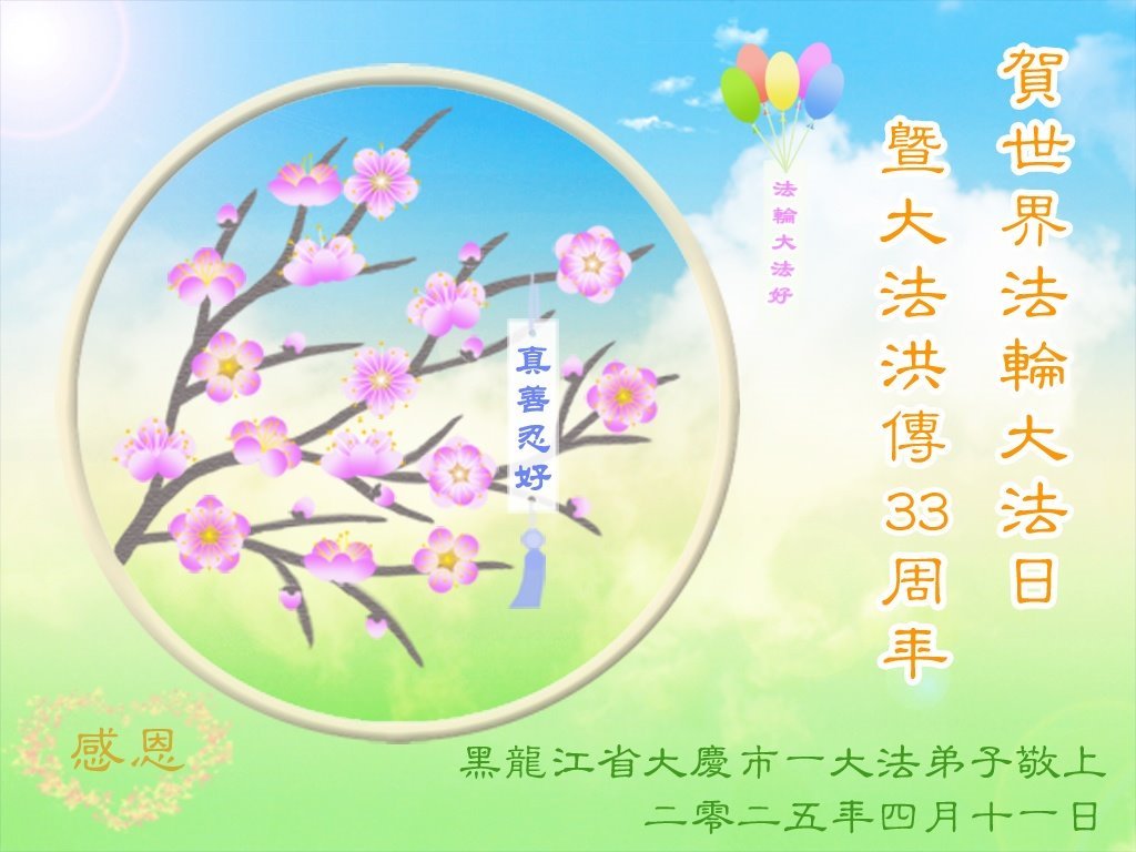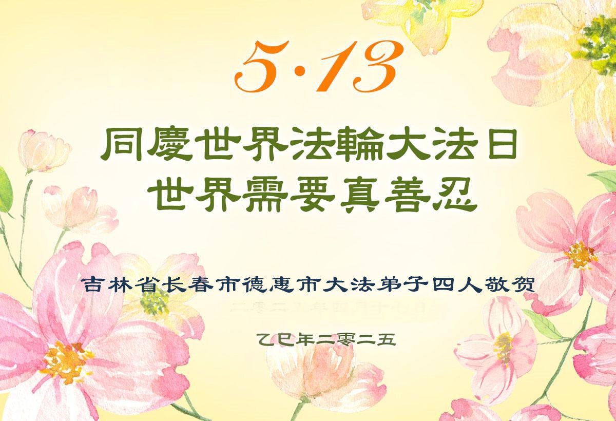 【明慧网二零二五年五月十一日】(明慧网记者综合报道)历经中共残酷迫害法轮功的二十六年,大法弟子们凭着对师尊的正信一路走过来了。中国各省各地都有学法小组,大法弟子开创环境每天静心学法炼功,按照真善忍实修自己,历经种种风雨魔难,依靠大法的指引不迷航。五月十三日,世界法轮大法日到来之际,中国各地学法小组的大法弟子们同庆同祝这神圣的日子,深深感念师尊的慈悲救度,恭贺师尊华诞。