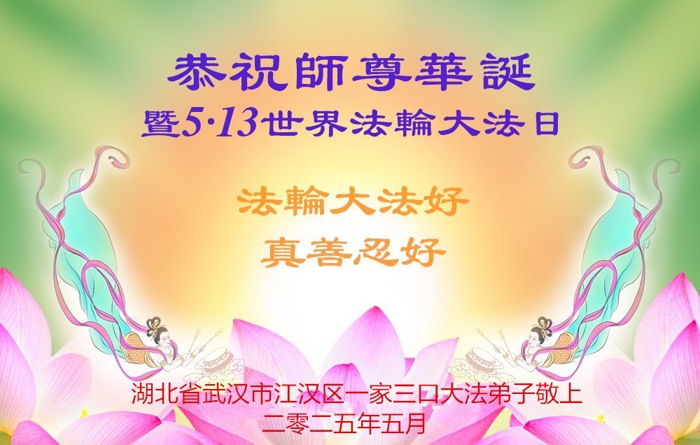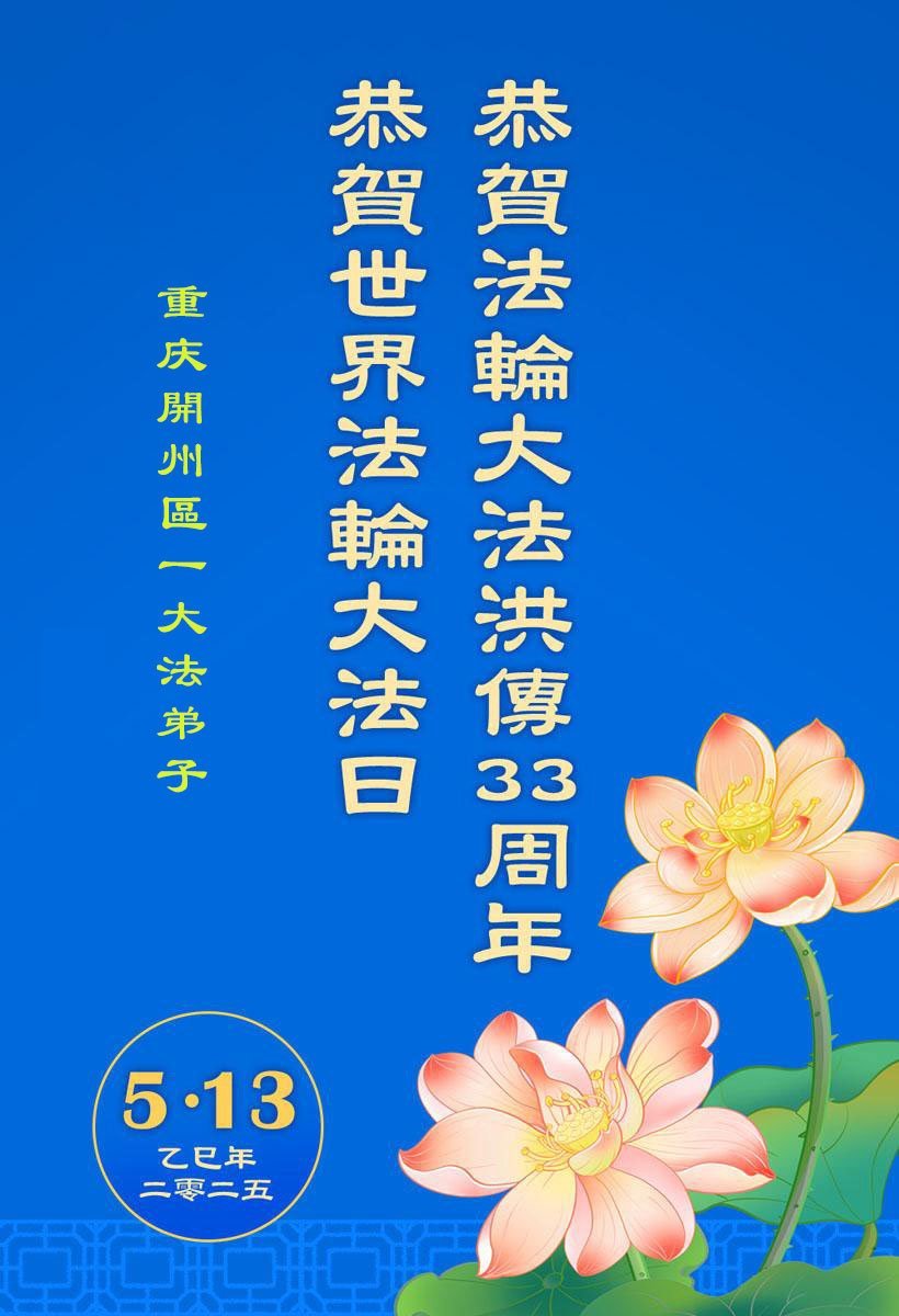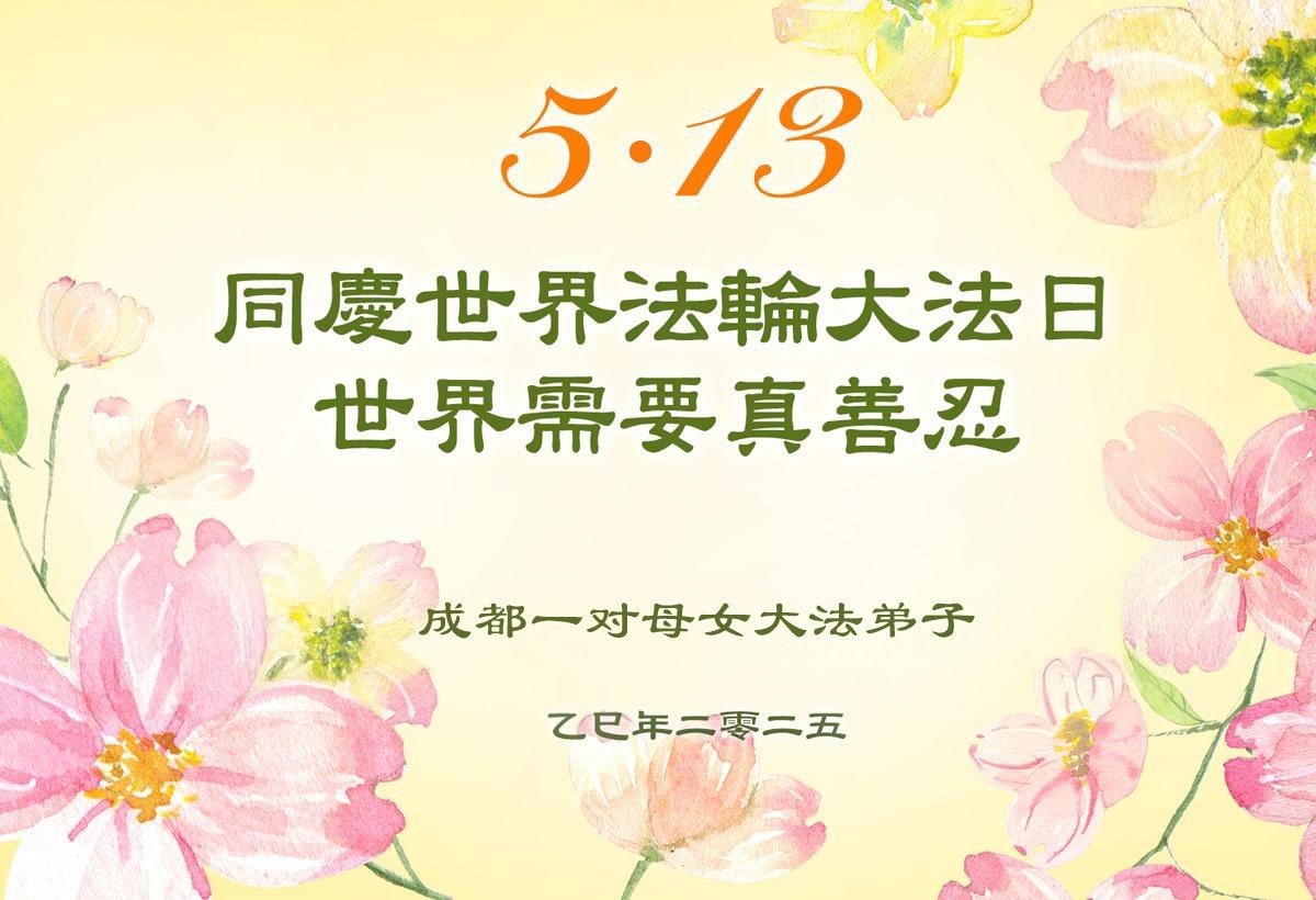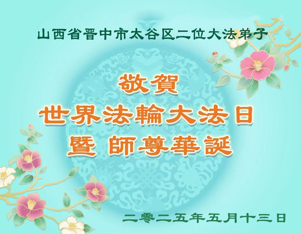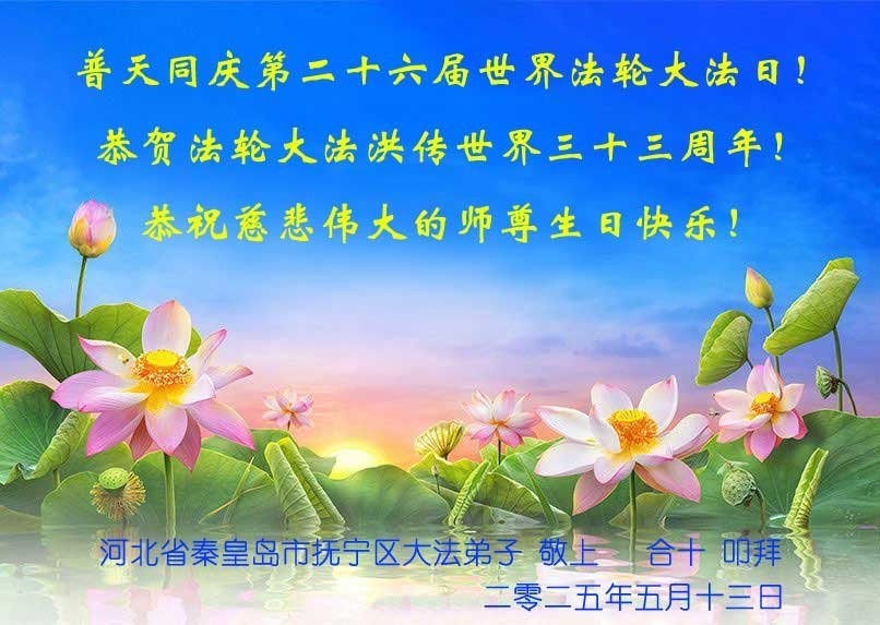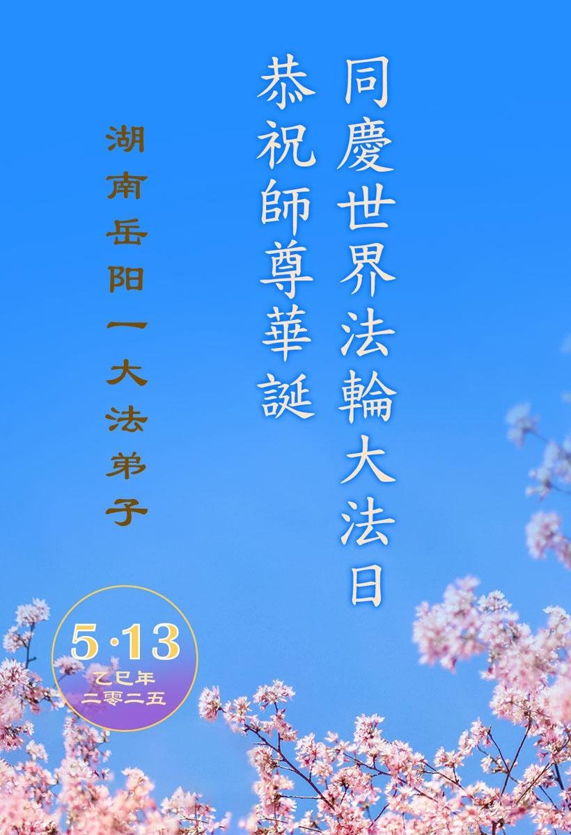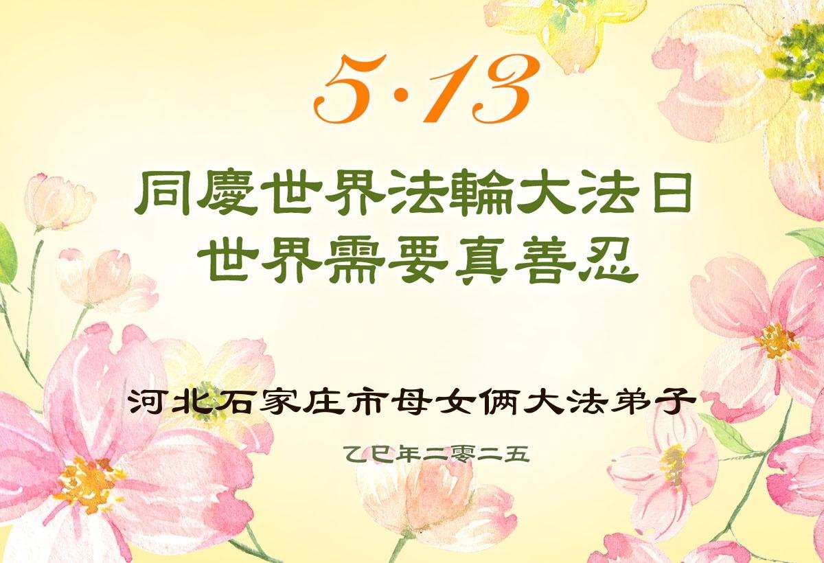 【明慧网二零二五年五月十一日】(明慧网记者综合报道)历经中共残酷迫害法轮功的二十六年,大法弟子们凭着对师尊的正信一路走过来了。中国各省各地都有学法小组,大法弟子开创环境每天静心学法炼功,按照真善忍实修自己,历经种种风雨魔难,依靠大法的指引不迷航。五月十三日,世界法轮大法日到来之际,中国各地学法小组的大法弟子们同庆同祝这神圣的日子,深深感念师尊的慈悲救度,恭贺师尊华诞。