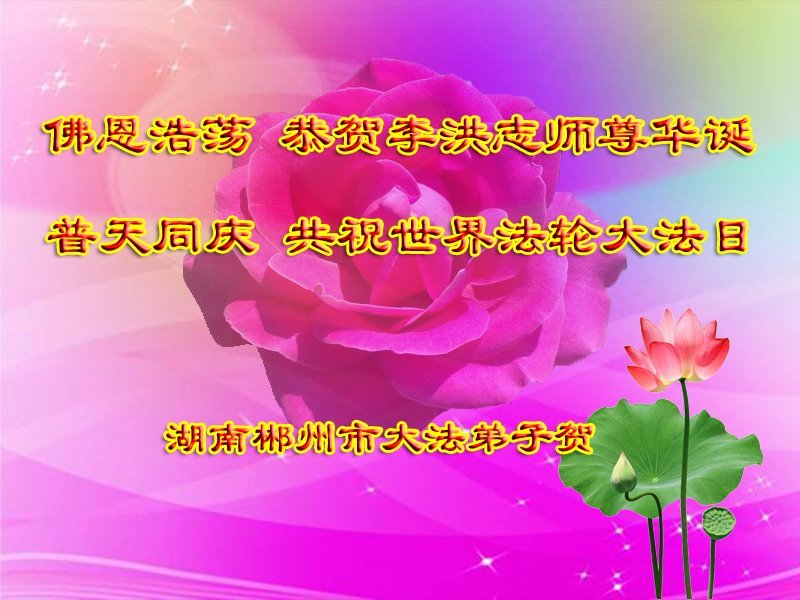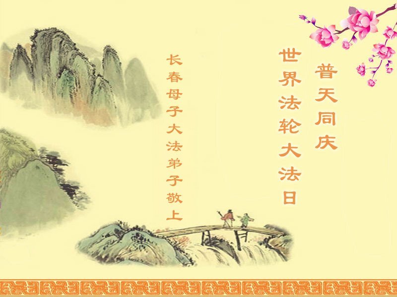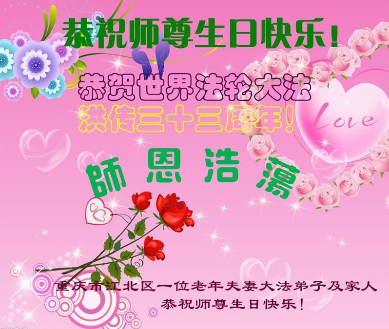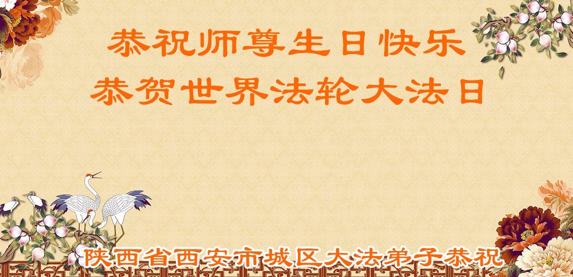 第二十六届世界法轮大法日暨师父华诞之际,同庆世界法轮大法日!恭贺师父生日快乐!师父您辛苦了!我们一定会紧紧拉着您的手,紧跟正法進程,不断提高心性,做好自己该做的事,跟师父回家!