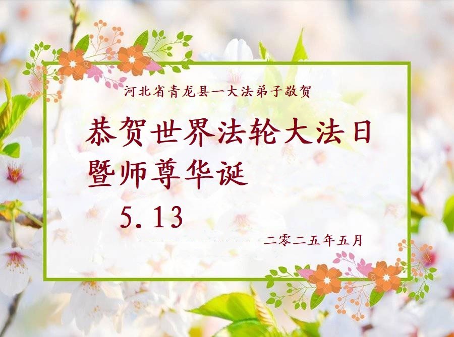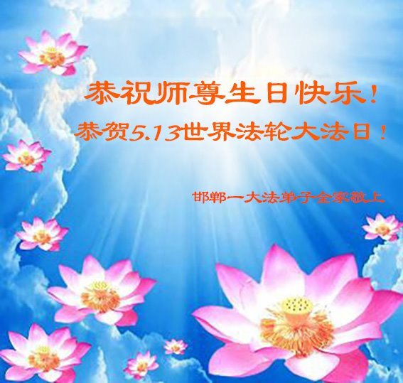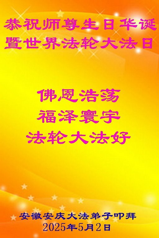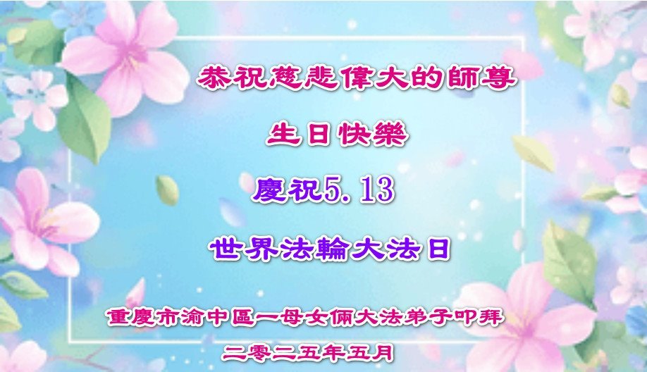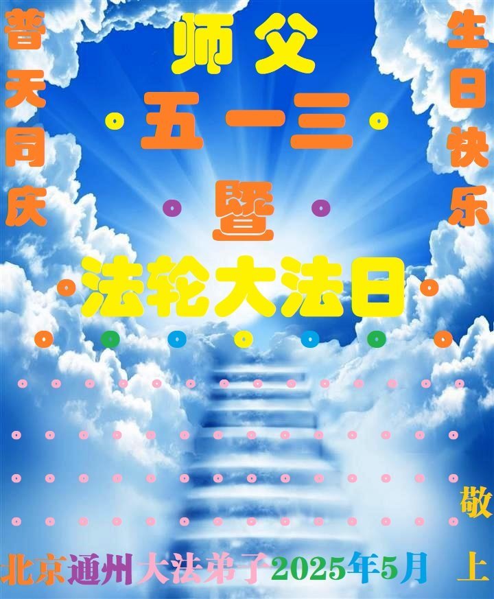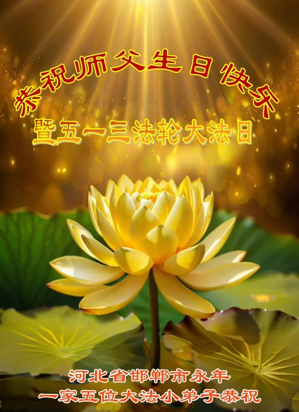 恭祝慈悲伟大的师尊生日快乐!普天同庆“五一三”世界法轮大法日!弟子感恩师尊慈悲救度。无量洪恩!感激无尽言!师恩难报,弟子唯有精進实修,做好三件事,多救人,以谢师恩!