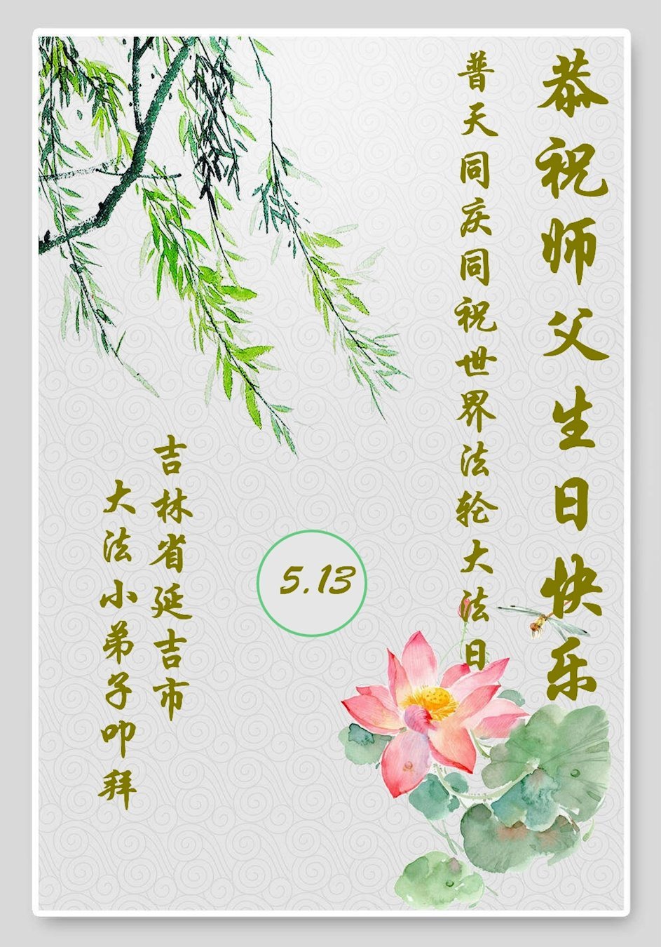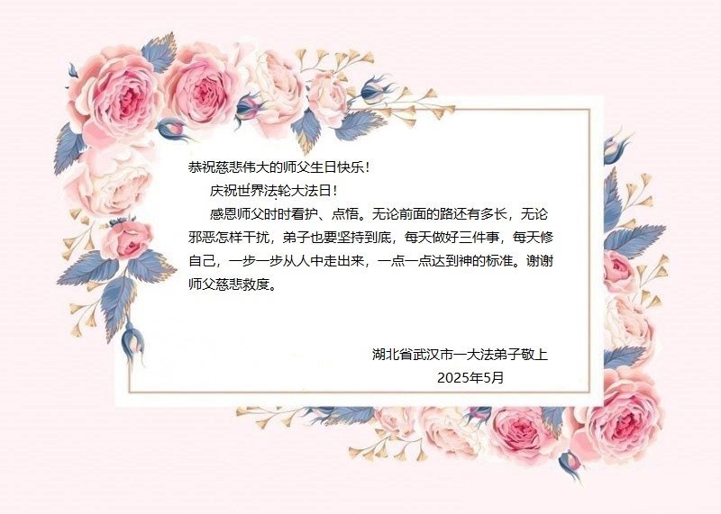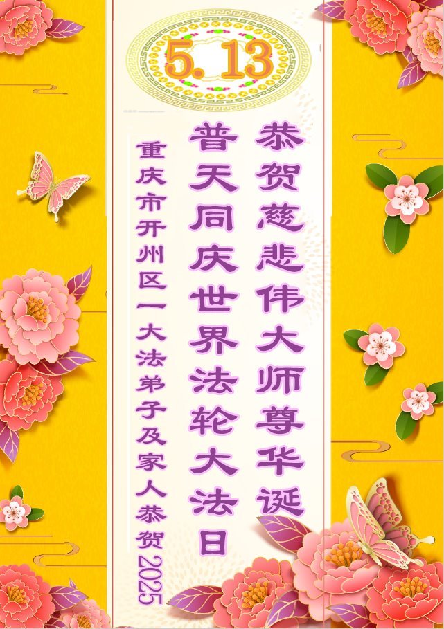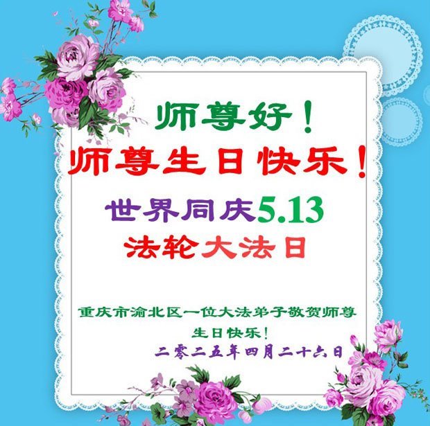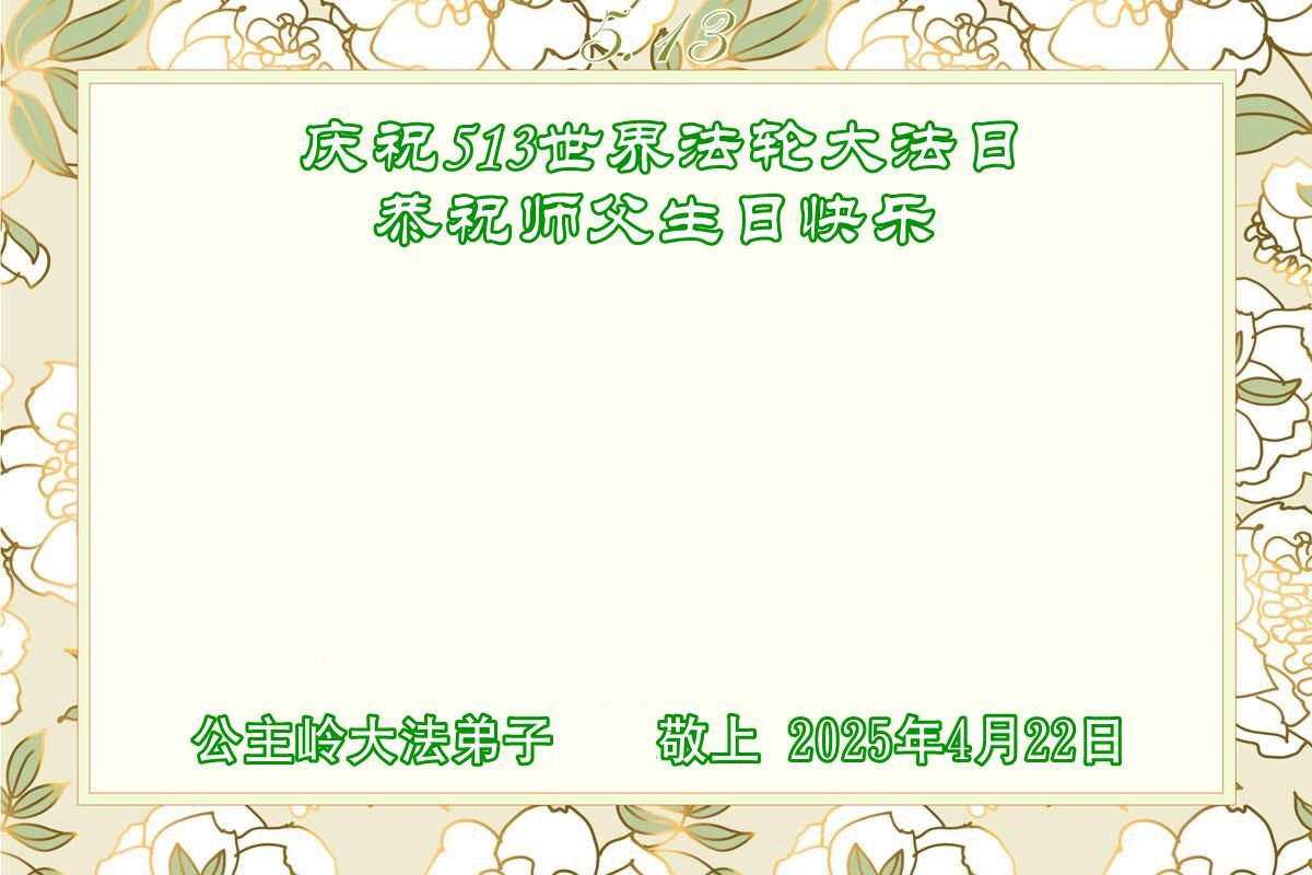 恭祝慈悲伟大的师尊生日快乐!普天同庆“五一三”世界法轮大法日!弟子感恩师尊慈悲救度。无量洪恩!感激无尽言!师恩难报,弟子唯有精進实修,做好三件事,多救人,以谢师恩!