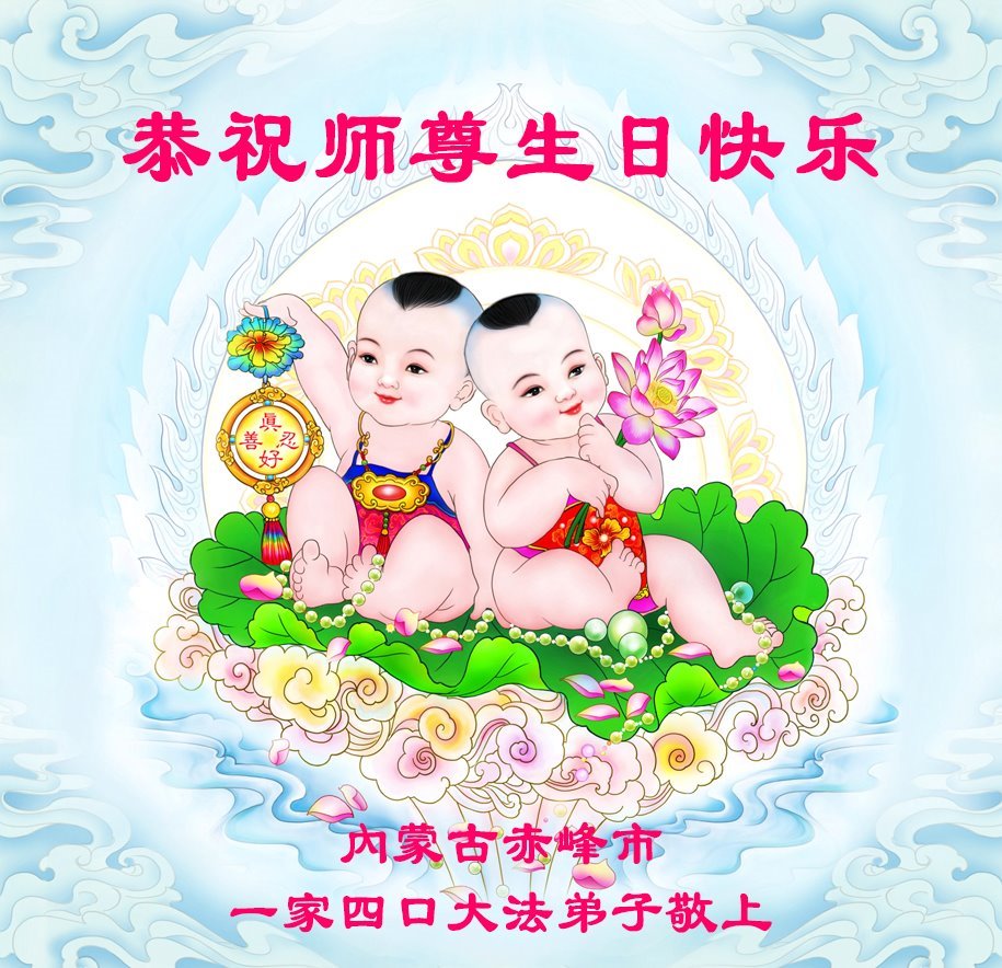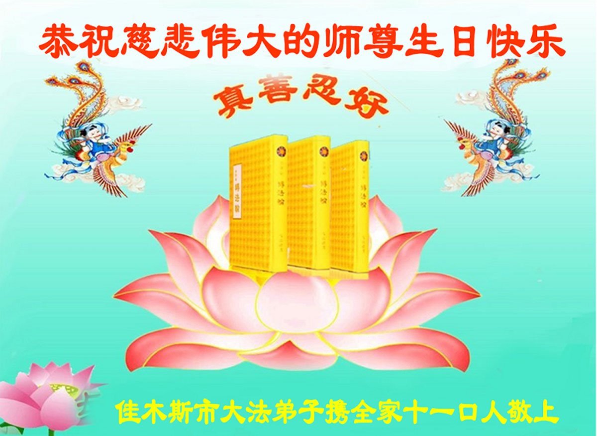 我修炼大法,我的家人都支持,因此我的家人都明白真相,受益多多。家人也让我替他们向师父问候。恭祝师父生日快乐!在新的一年里,我们学法小组会更加努力做好三件事,完成我们的历史使命,跟随师父正法到最后一刻。