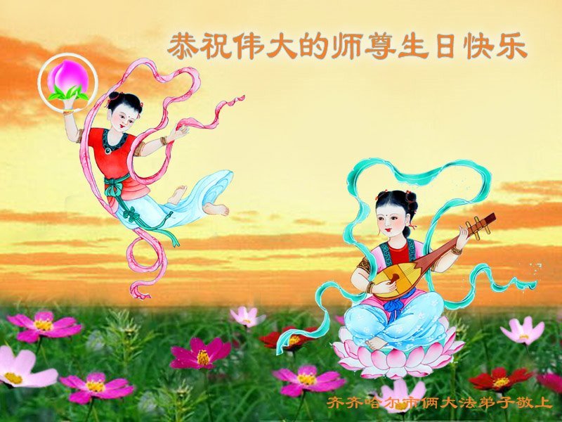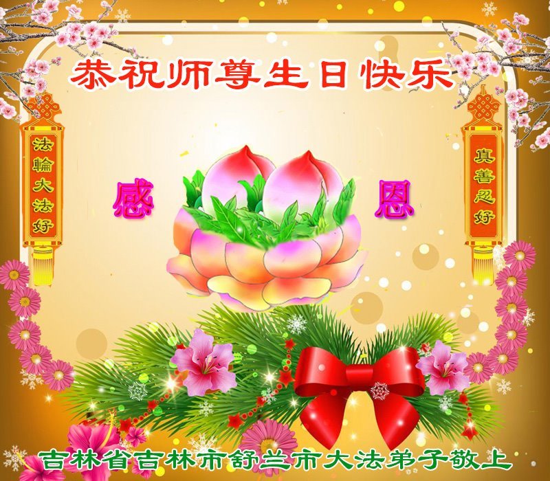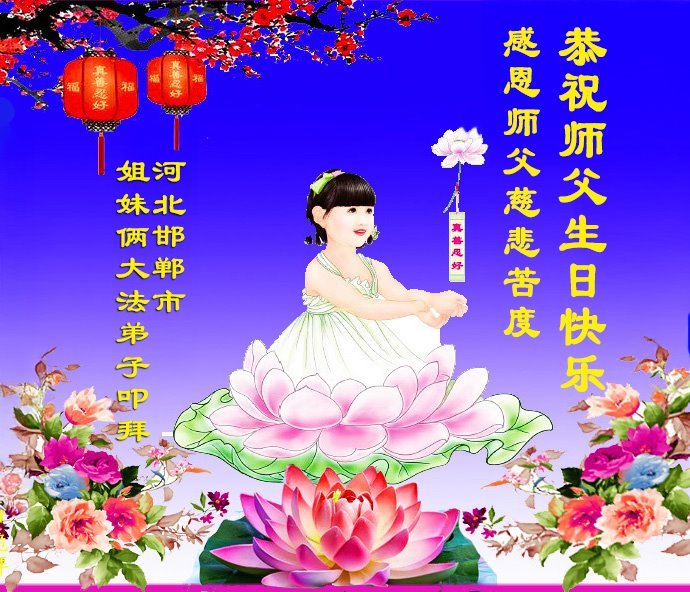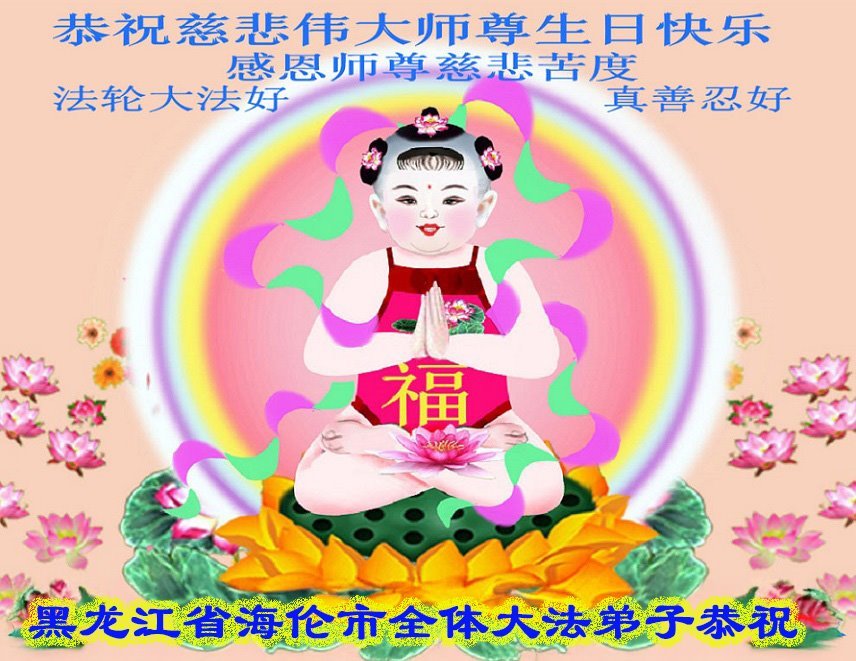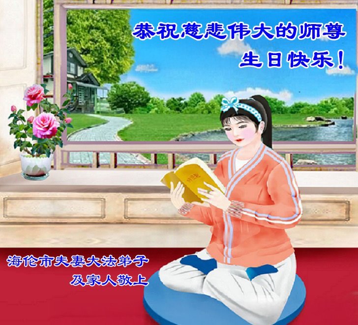 跪拜慈悲伟大的师尊,弟子向师尊问好,感恩师尊慈悲救度。恭祝师尊生日快乐!敬贺世界法轮大法日!