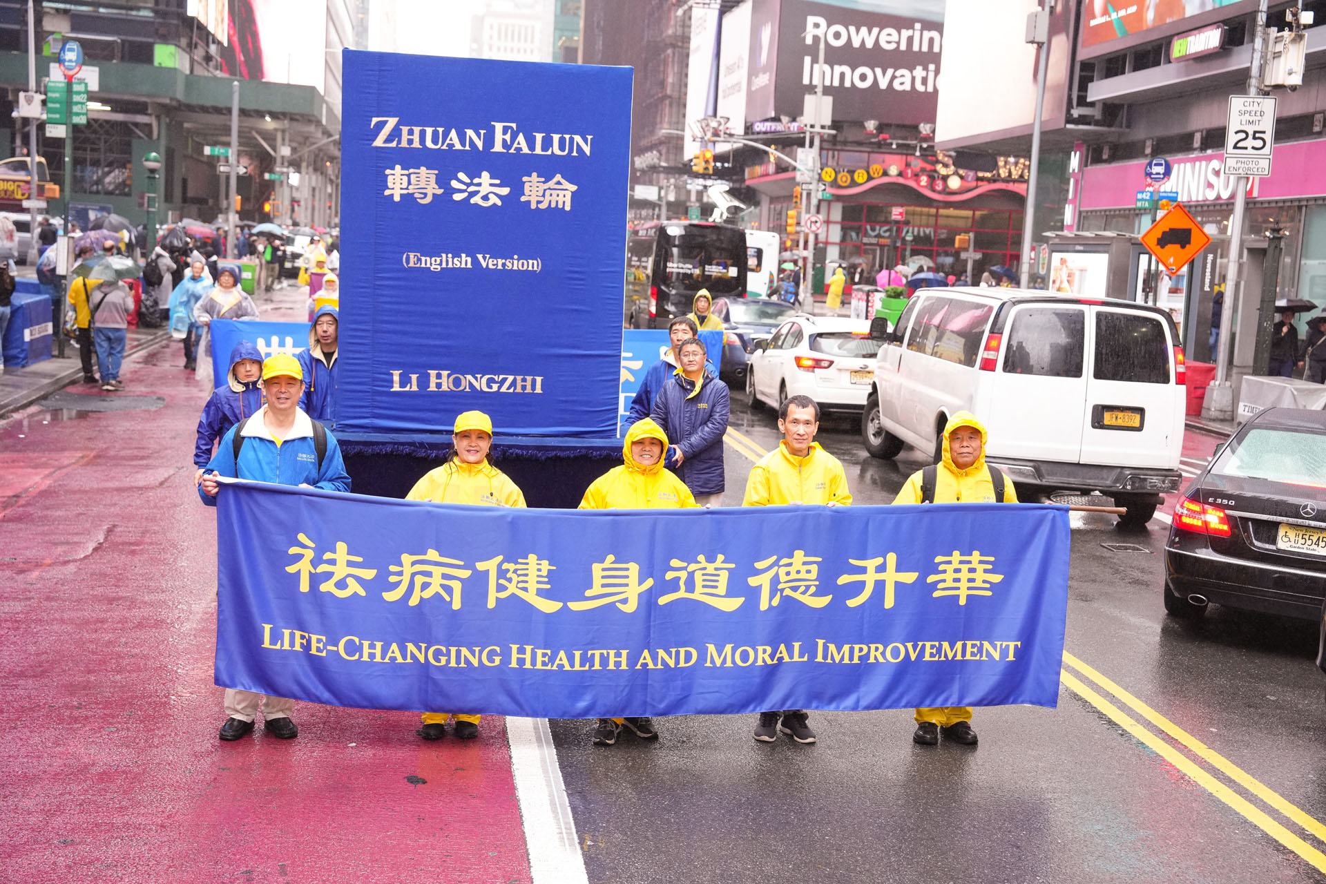 游行队伍绵延数公里。游行队伍中,五彩缤纷的巨型横幅,英文的,中英文的,中文的,在繁华热闹的曼哈顿中城,包括联合国总部、大中央车站(Grand Central)、时代广场(Times Square)等著名地标区,在美国人口最多、节奏最快、有“最强大全球城市”之称的纽约市,拉起了一道绵延数英里、充满节庆气氛的、靓丽的风景线。