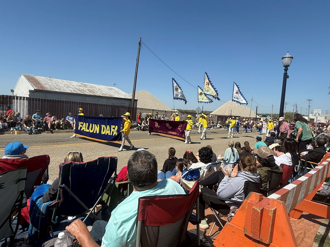 法轮功队伍由来自密西根、俄亥俄的学员组成,他们身穿明亮的黄色炼功服,手举“法轮大法好”和“真、善、忍”横幅。队伍中,学员们还组成手持印有法轮图案的旌旗阵,还包括身着蓝色传统服饰的唐鼓队,精神饱满地走过游行路线,整齐划一的鼓声吸引了无数观众的目光。