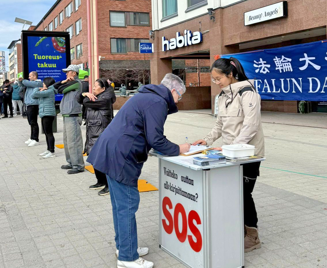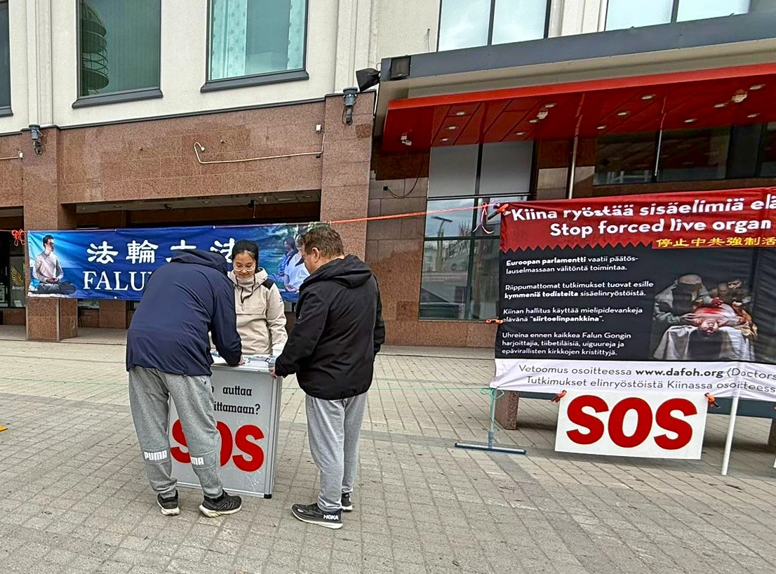 一对居住在北部、但经常前往赫尔辛基的夫妻表示,他们多年来对中共的恶行有所耳闻,但对活摘器官这样的罪行仍感到难以置信。他们离开后还转告朋友过来声援,朋友听闻后也立刻签名支持。