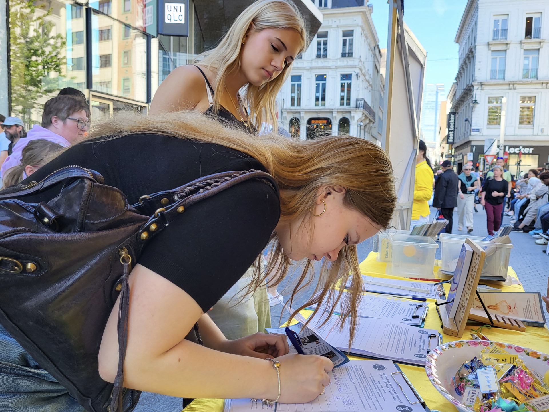 图6~9:现场不少民众在签名板上签名,支持法轮功反迫害。