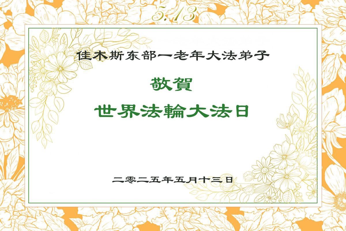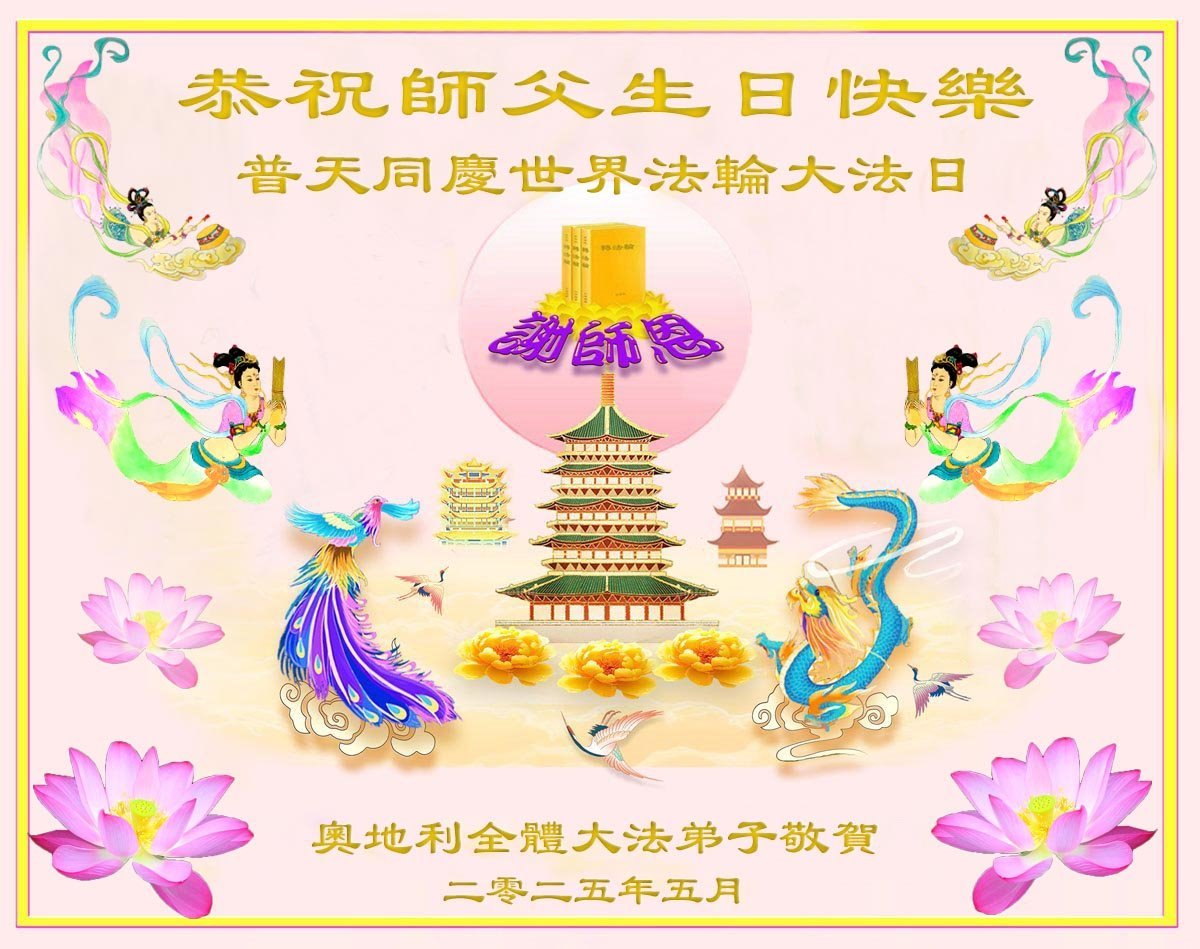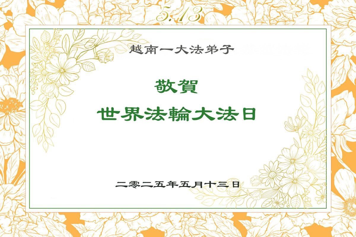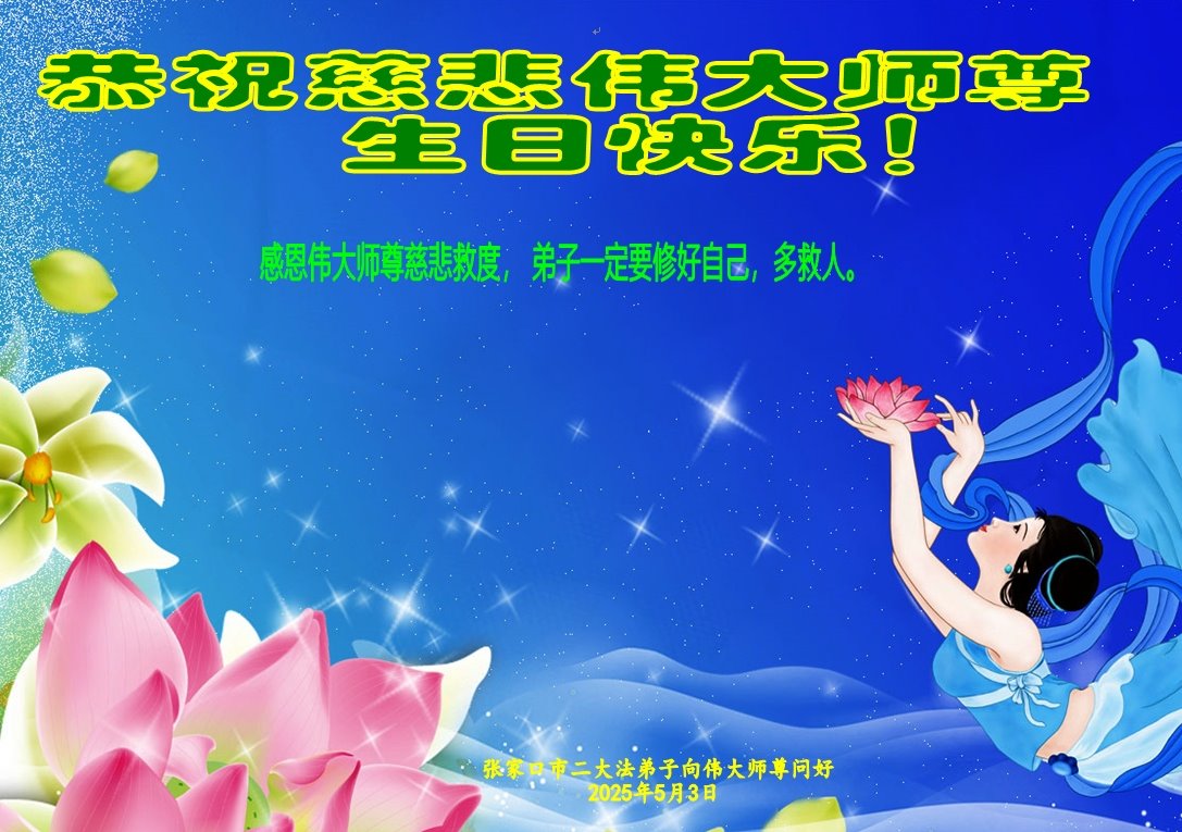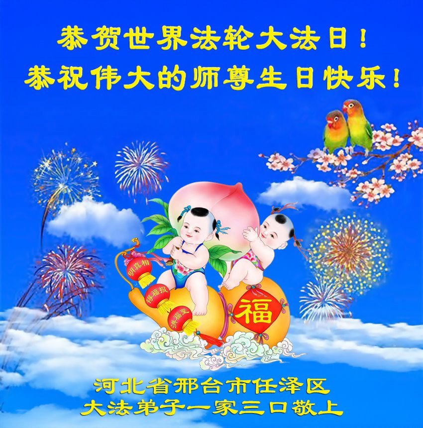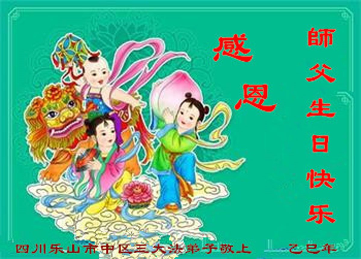 以下是来自韩国、日本、印度、马来西亚、新加坡、中国、菲律宾、印度尼西亚、越南、老挝、泰国、香港、澳门、台湾、阿联酋、伊朗、土耳其、波兰、俄罗斯、法国、英国、爱尔兰、德国、西班牙、意大利、希腊、比利时、荷兰、芬兰、丹麦、瑞典、奥地利、挪威、斯洛伐克、克罗地亚、塞尔维亚、黑山、澳洲、新西兰、美国、加拿大、厄瓜多尔、哥伦比亚、委内瑞拉、巴西、秘鲁、拉脱维亚、波斯尼亚和黑塞哥维那等国家和地区大法弟子致敬师尊的部份贺词贺卡。