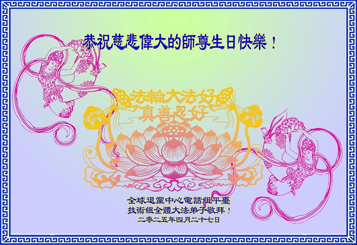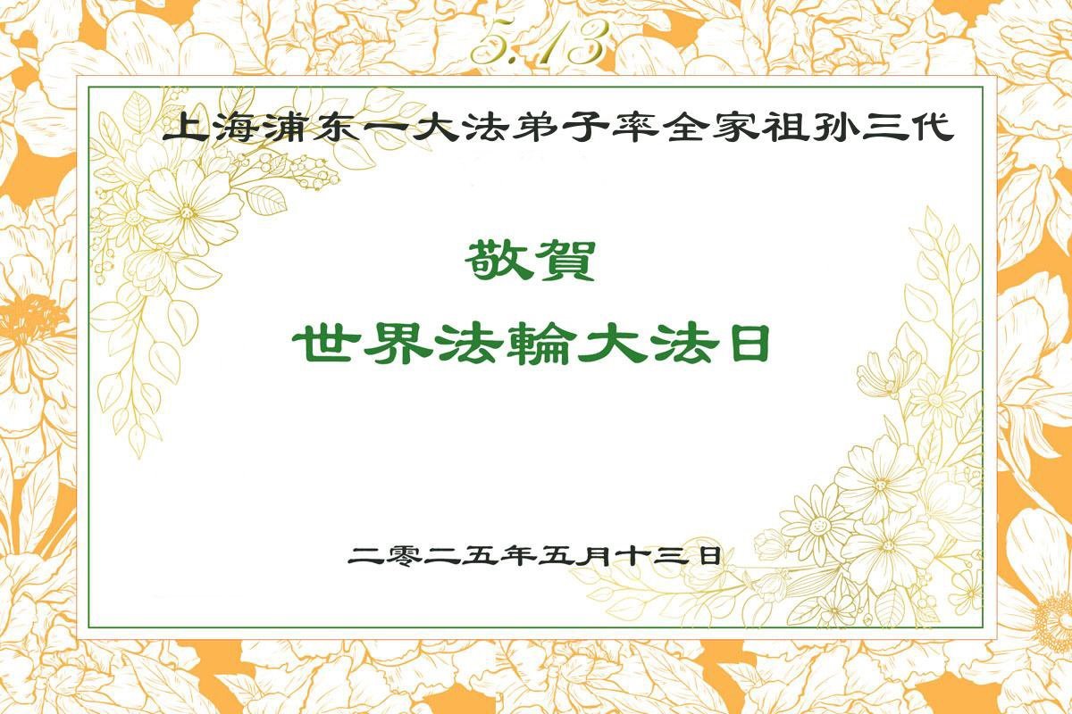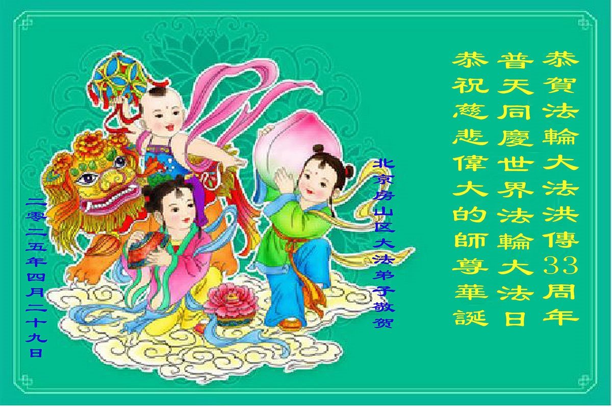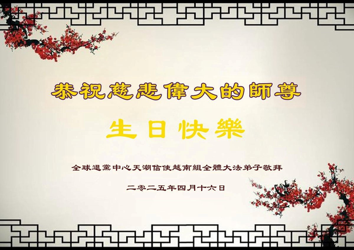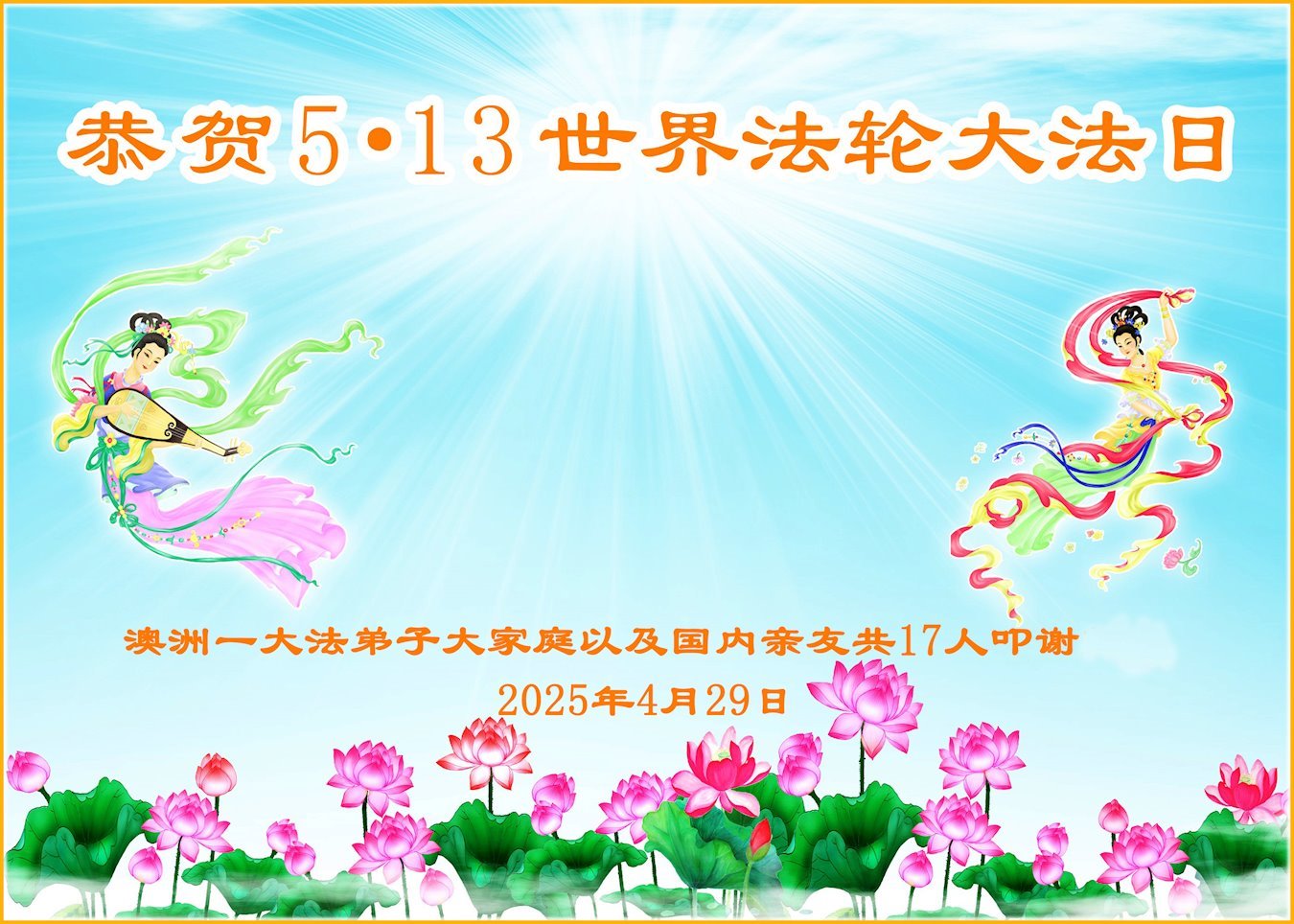 以下是来自韩国、日本、印度、马来西亚、新加坡、中国、菲律宾、印度尼西亚、越南、老挝、泰国、香港、澳门、台湾、阿联酋、伊朗、土耳其、波兰、俄罗斯、法国、英国、爱尔兰、德国、西班牙、意大利、希腊、比利时、荷兰、芬兰、丹麦、瑞典、奥地利、挪威、斯洛伐克、克罗地亚、塞尔维亚、黑山、澳洲、新西兰、美国、加拿大、厄瓜多尔、哥伦比亚、委内瑞拉、巴西、秘鲁、拉脱维亚、波斯尼亚和黑塞哥维那等国家和地区大法弟子致敬师尊的部份贺词贺卡。