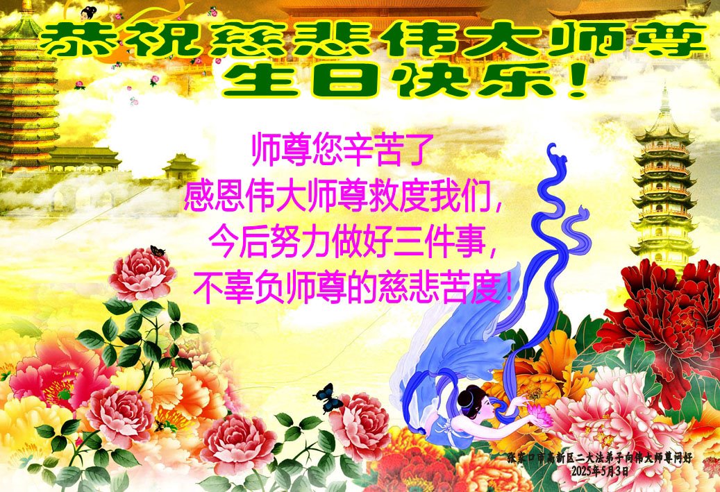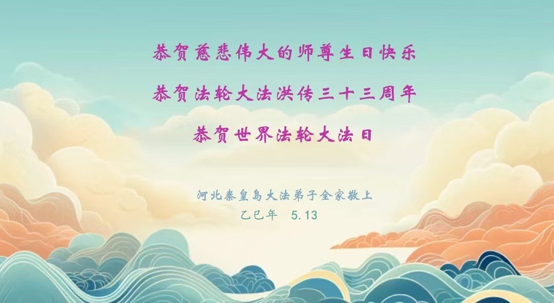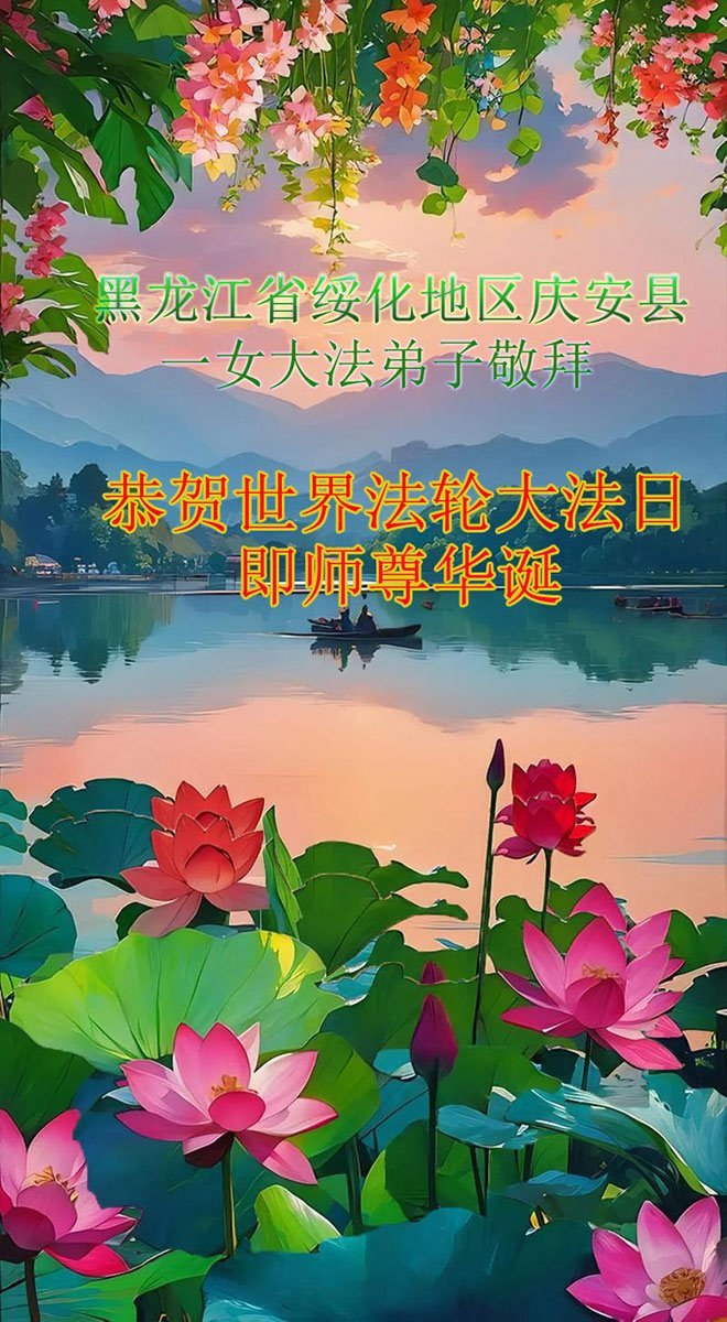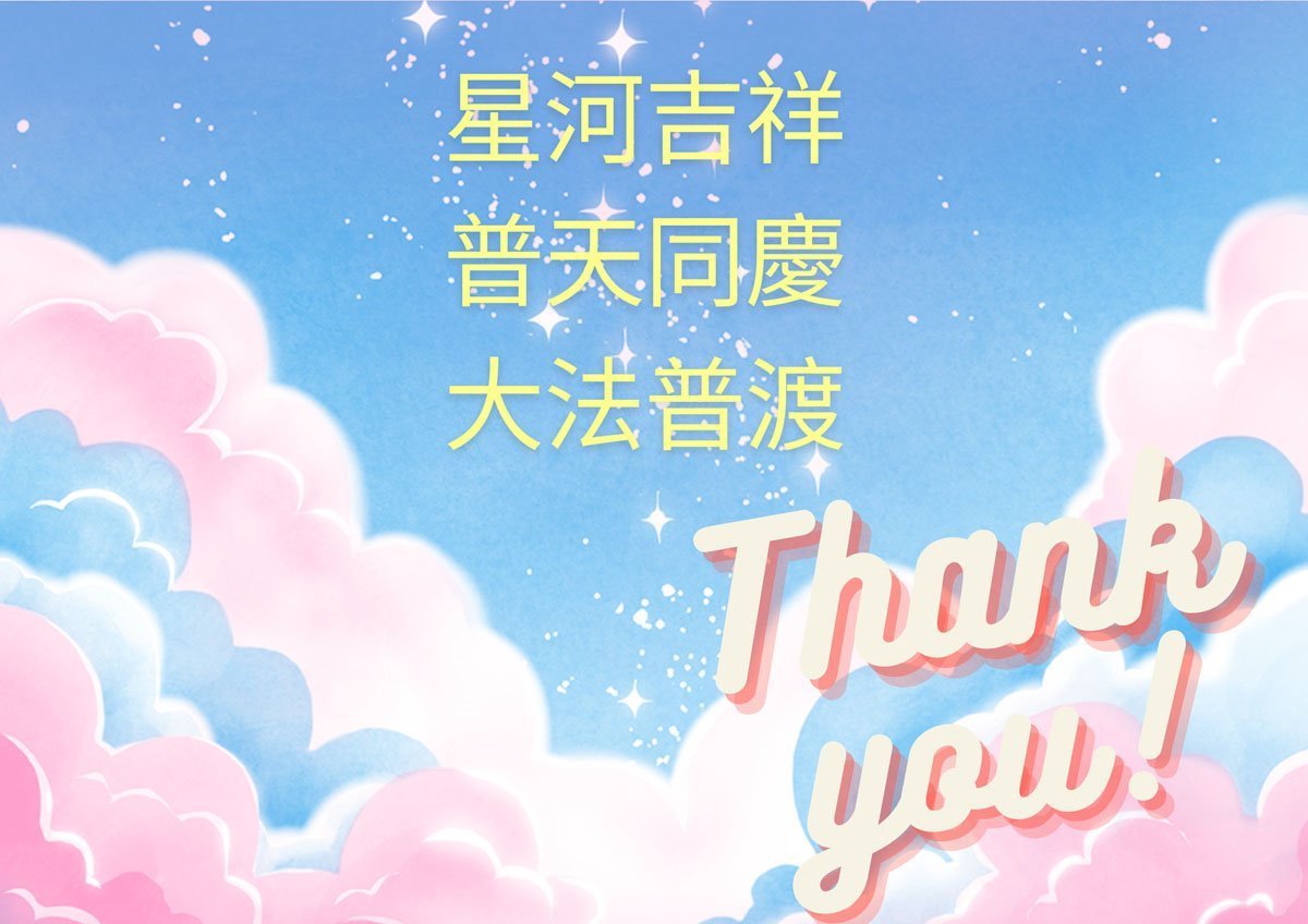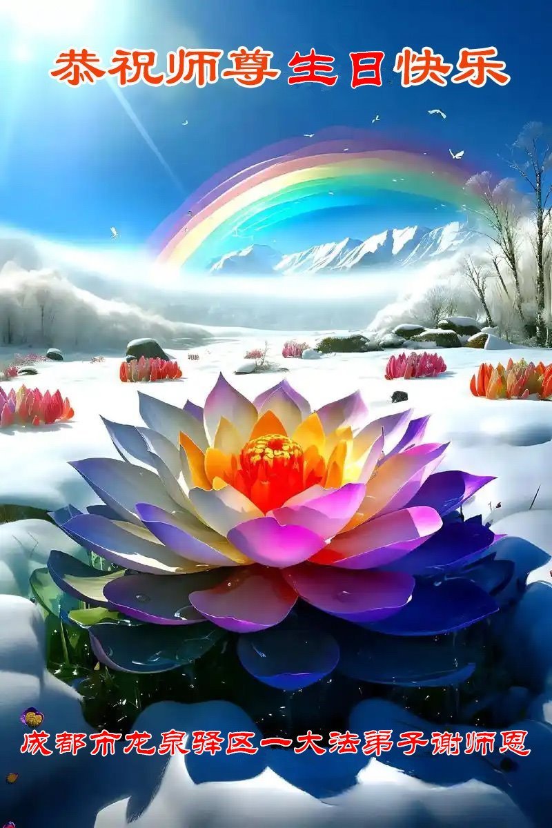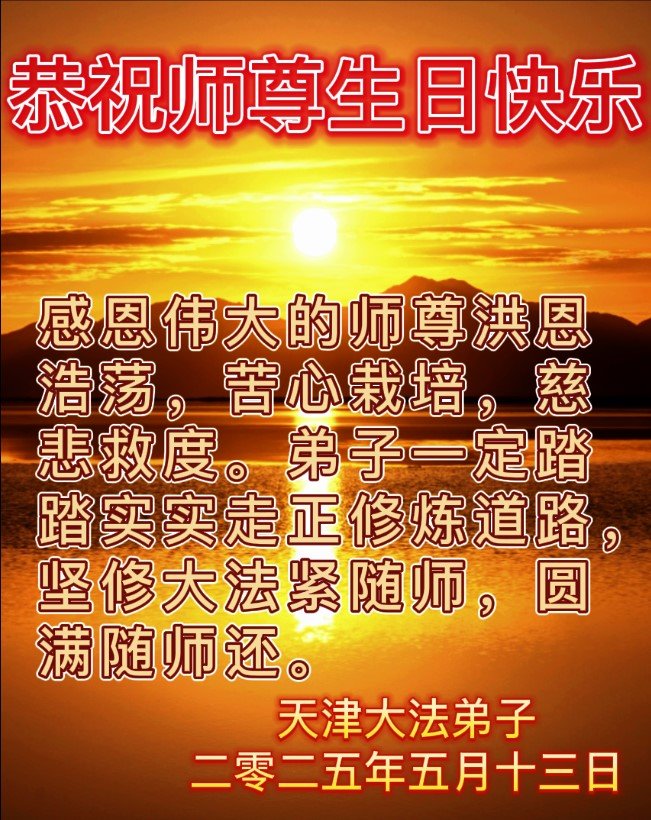 在这普天同庆同颂同祝的日子里,弟子感恩师尊的慈悲救度!感恩师尊的一路看护!在这历史的最后时刻,弟子会努力跟上师尊的正法進程,珍惜这宝贵的时间与机缘,做好大法弟子该做好的一切!