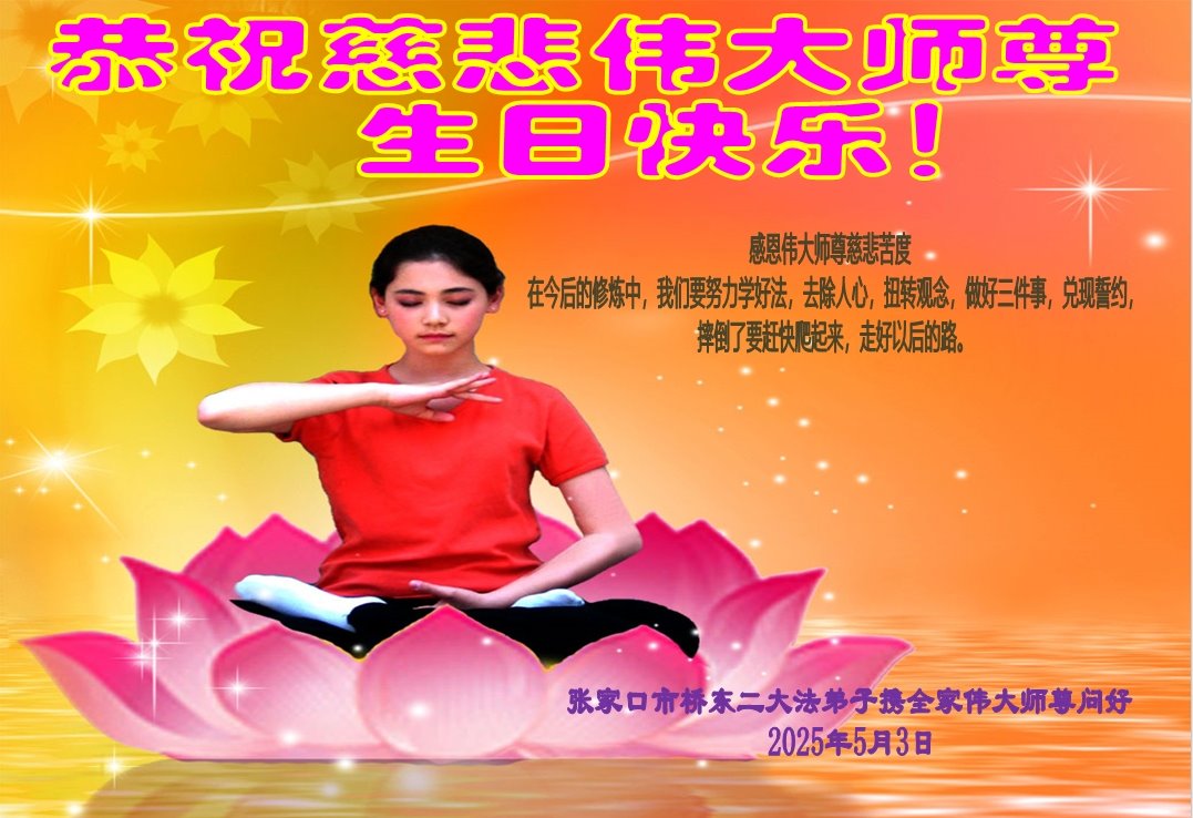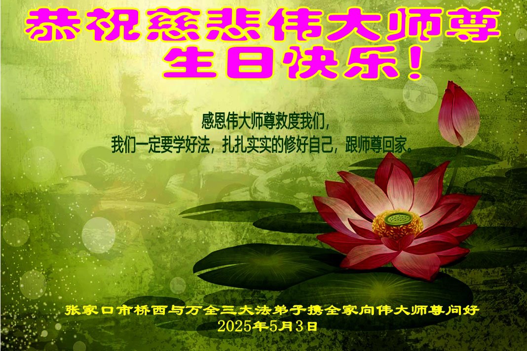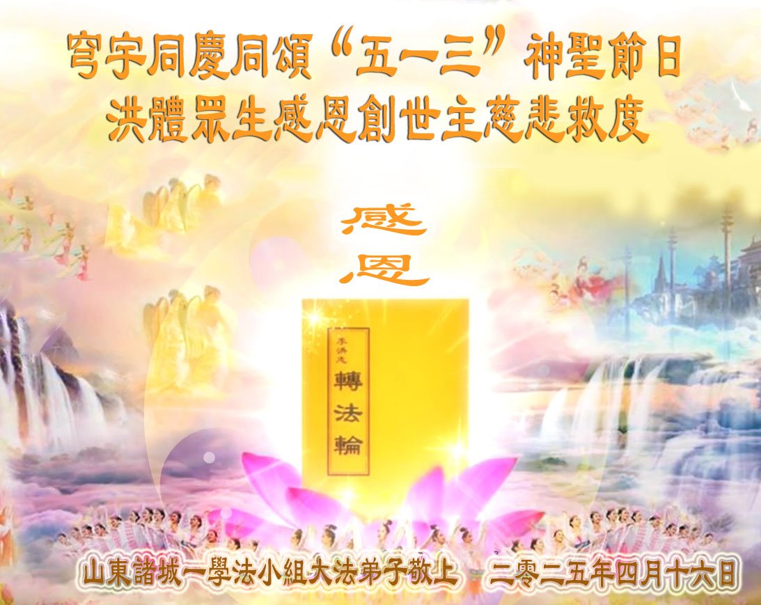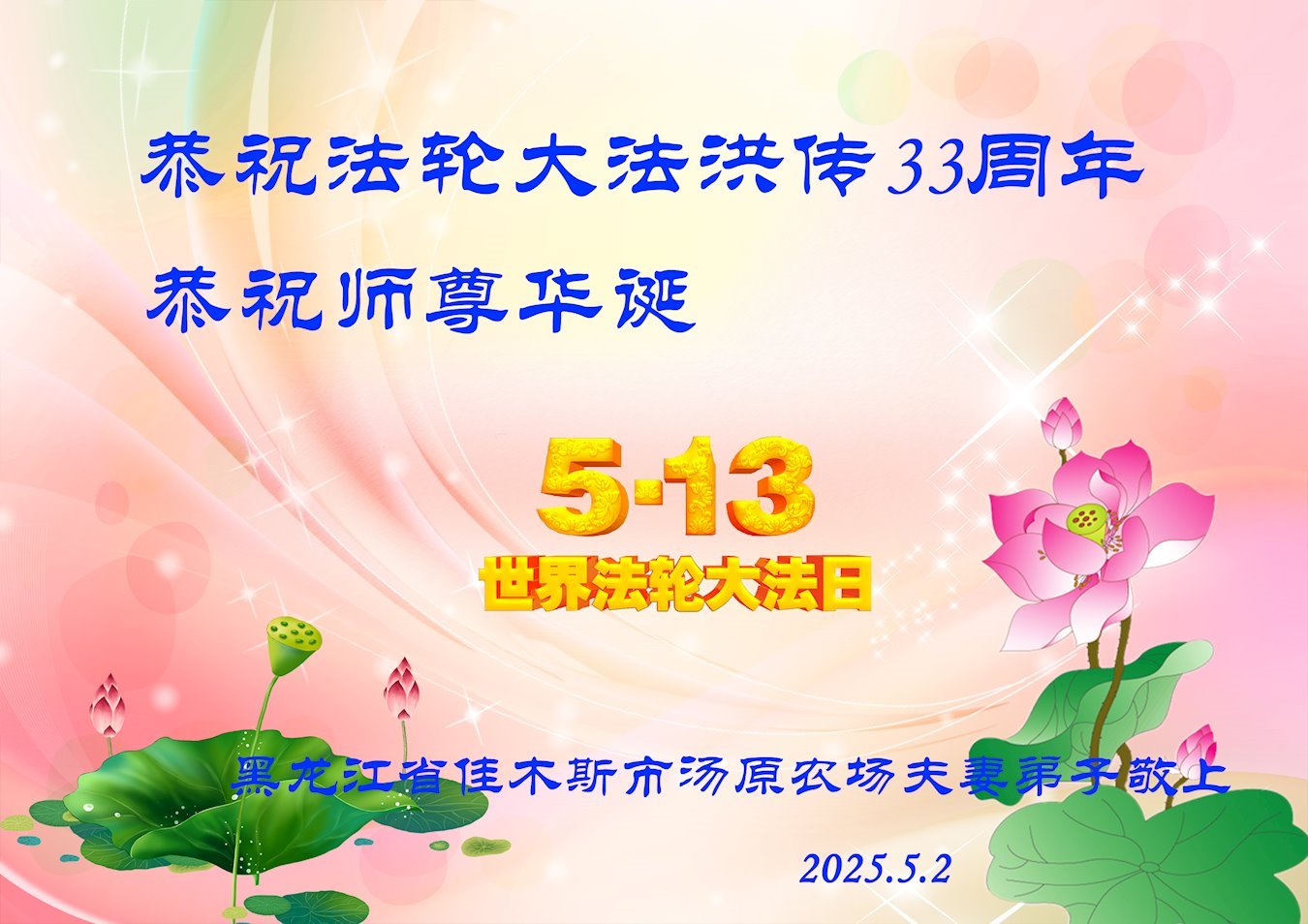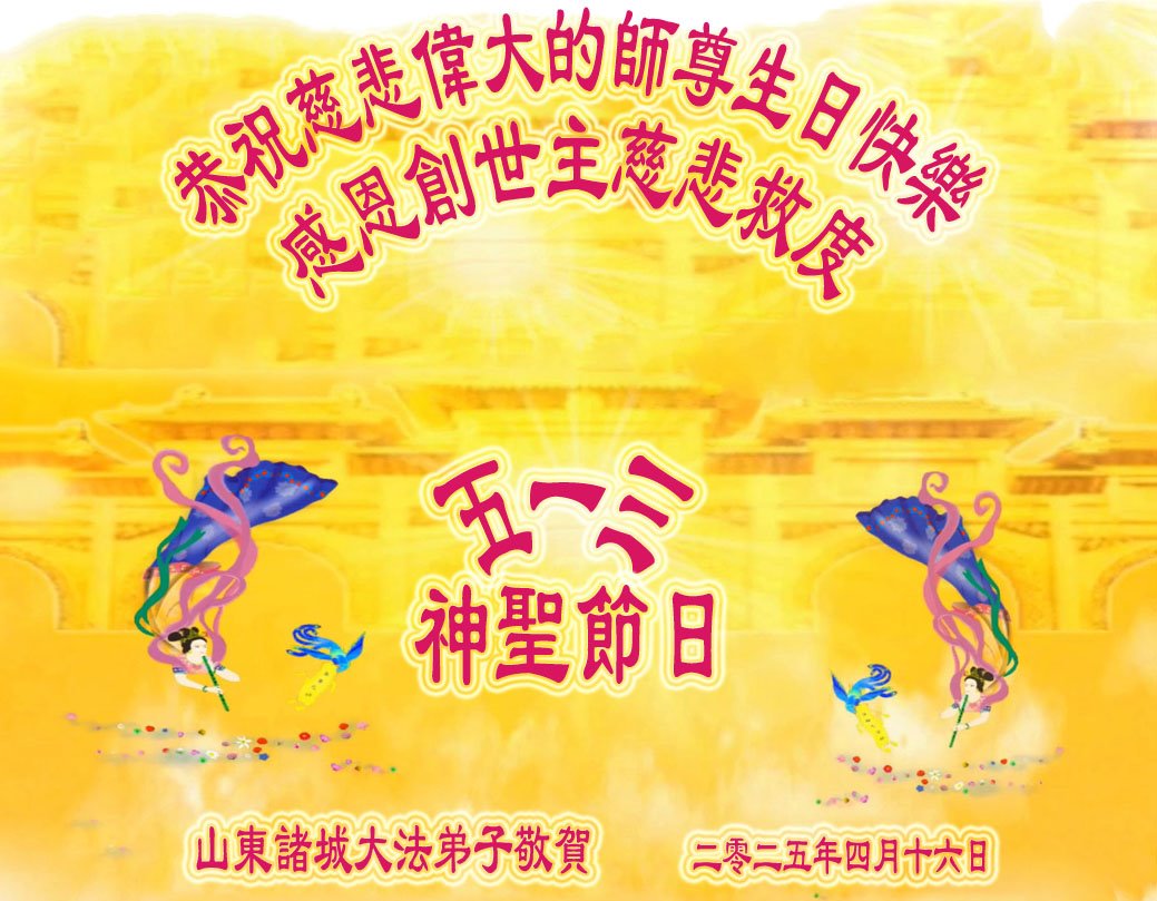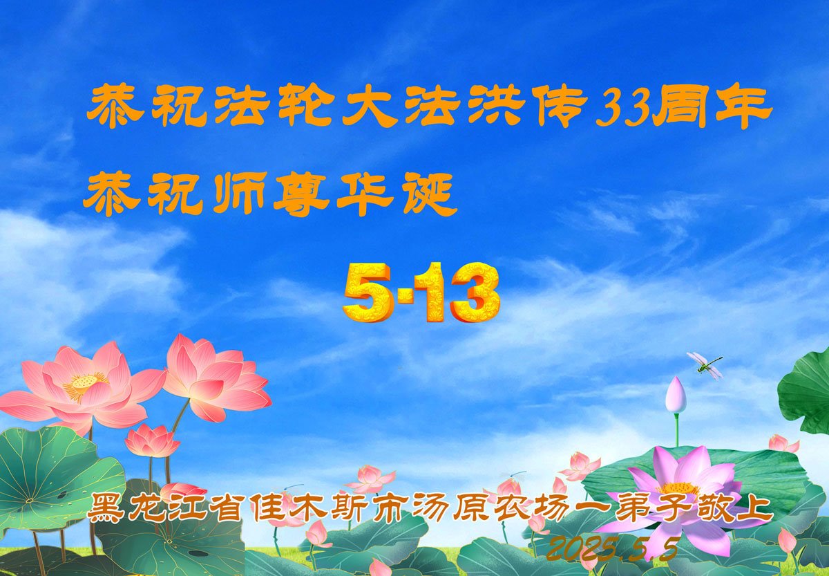 在这普天同庆同颂同祝的日子里,弟子感恩师尊的慈悲救度!感恩师尊的一路看护!在这历史的最后时刻,弟子会努力跟上师尊的正法進程,珍惜这宝贵的时间与机缘,做好大法弟子该做好的一切!