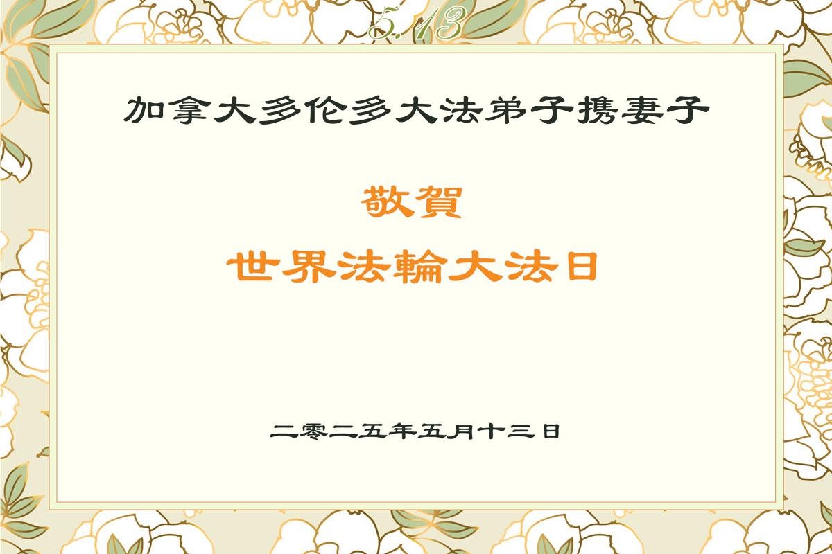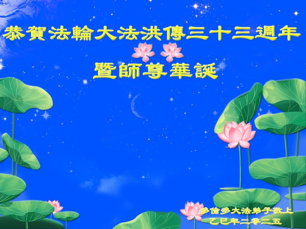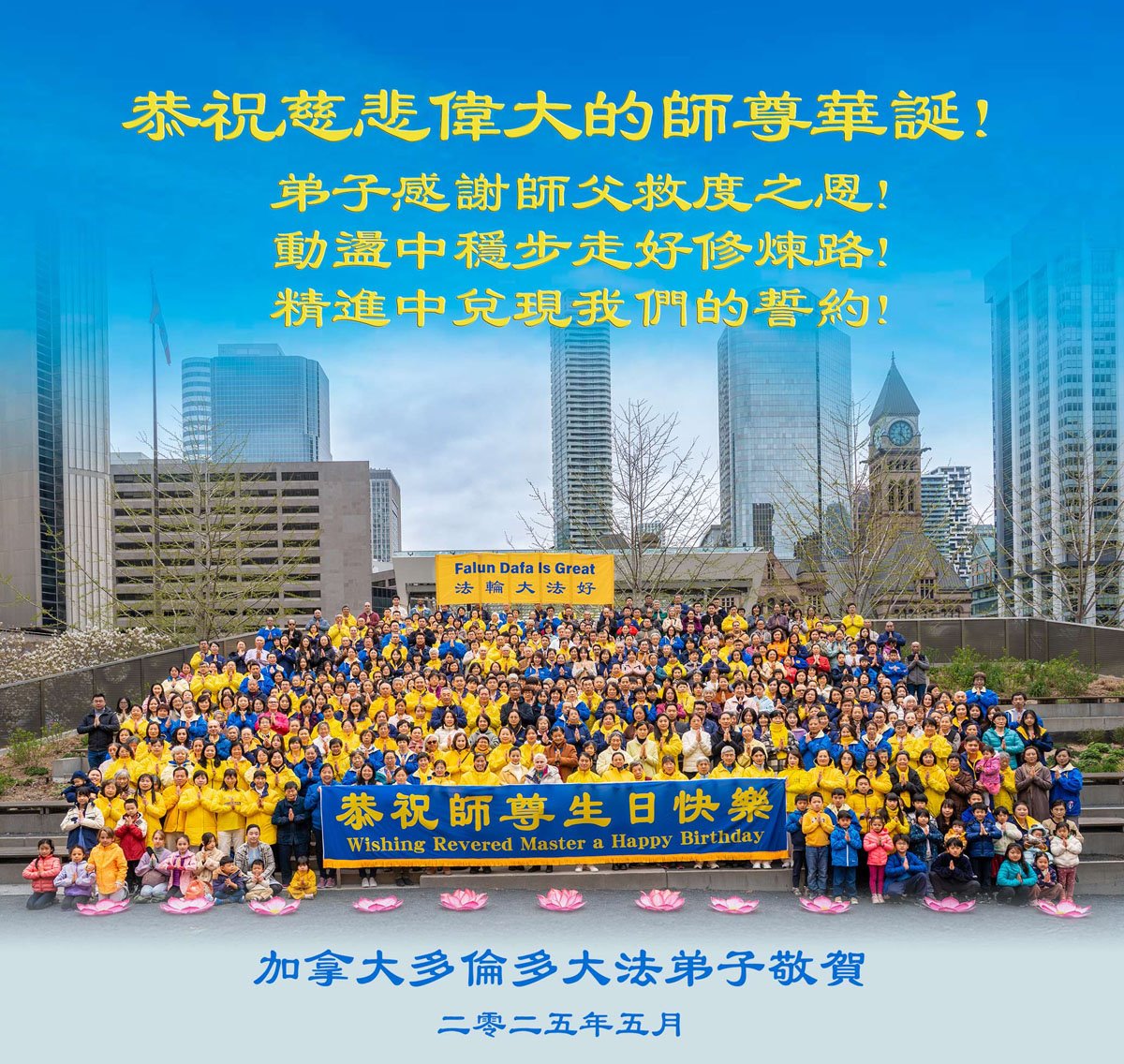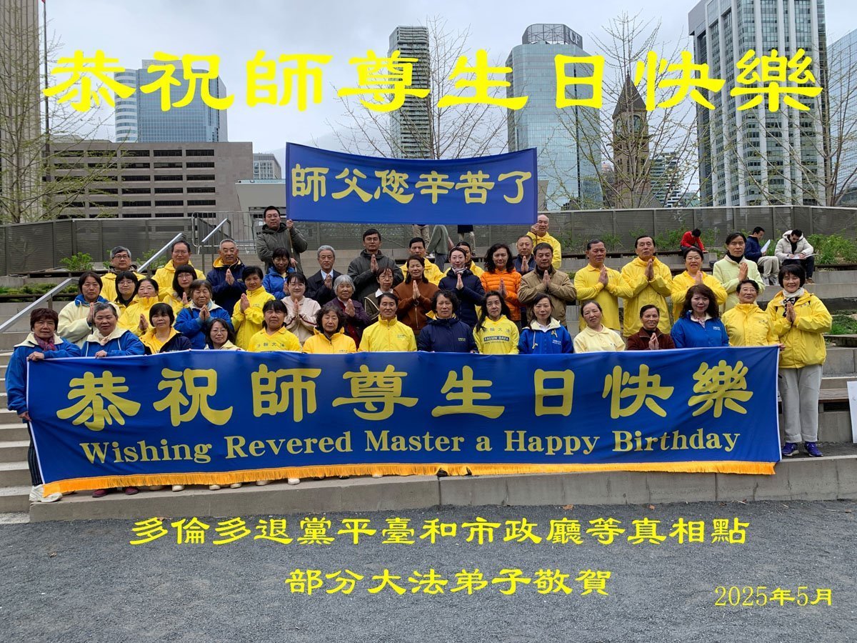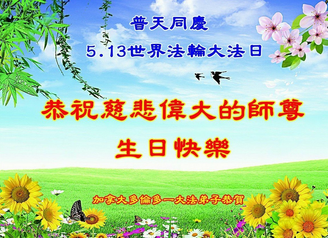 ![]() 图1:多伦多大法弟子恭祝师父生日快乐! |