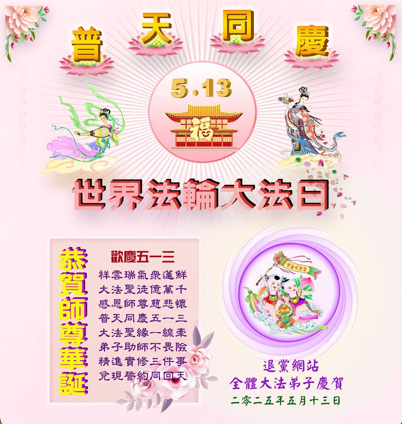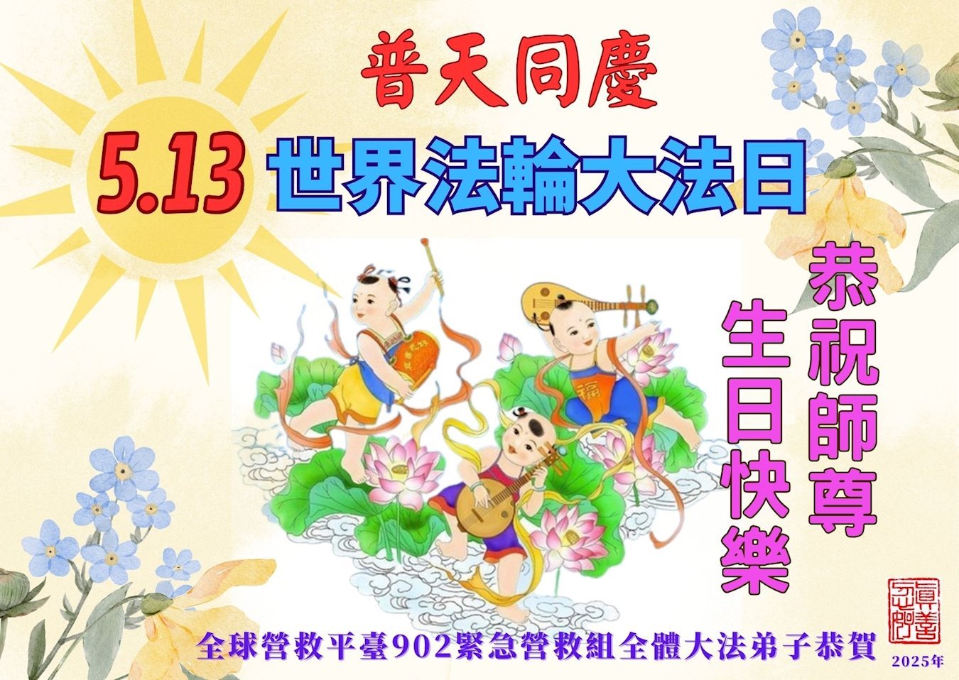 普天同庆513世界法轮大法日!恭祝师父生日快乐!师父您辛苦了!