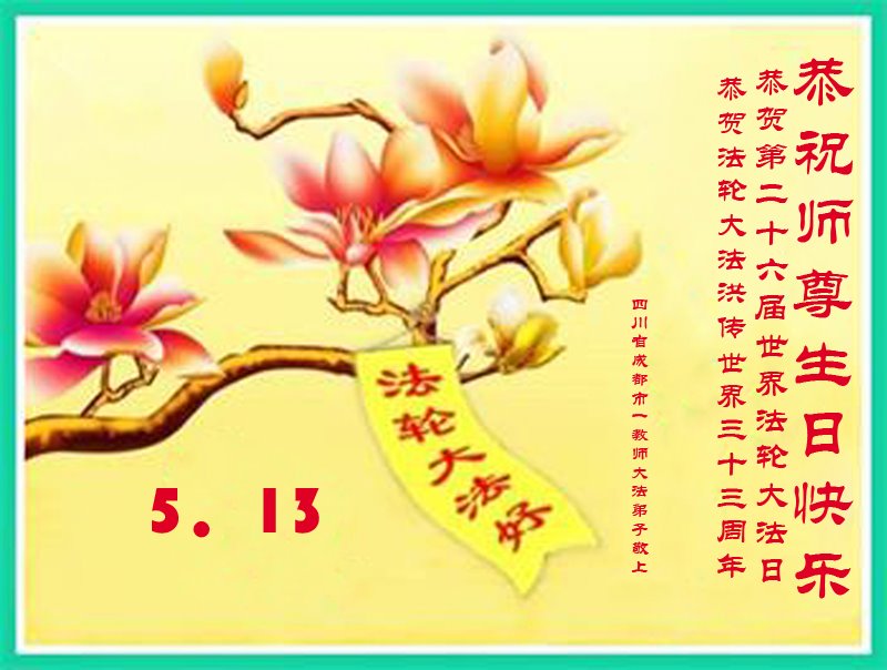 恭祝师父生日快乐!恭贺世界法轮大法日!