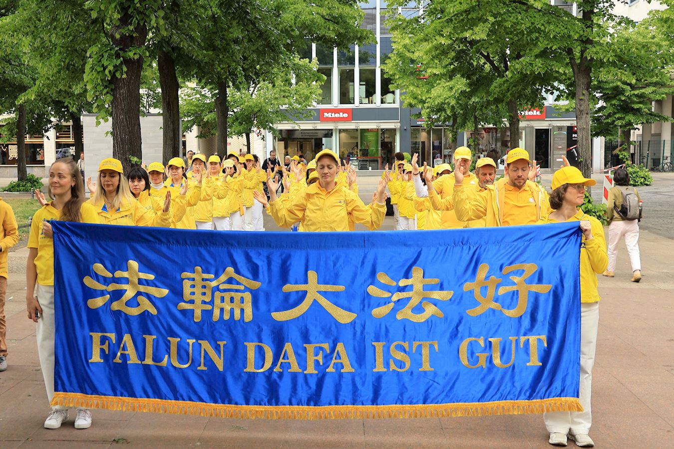 两天的庆祝活动结束了,这背后有众多无私的付出。无论是当地法轮功学员的对活动的策划,事无巨细的安排;还是来自德国其他地方及欧洲各国学员的假期行程的安排,车马劳顿的奔波;不论是在游行队伍中自始至终全身心投入,或是在队伍外跑前跑后,为几乎所有路人送上一份真相资料,并和他们讲述大法真相的努力……