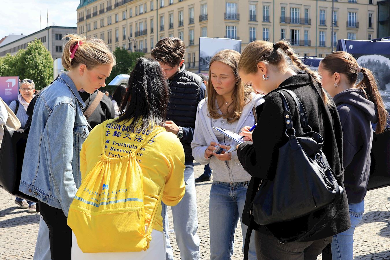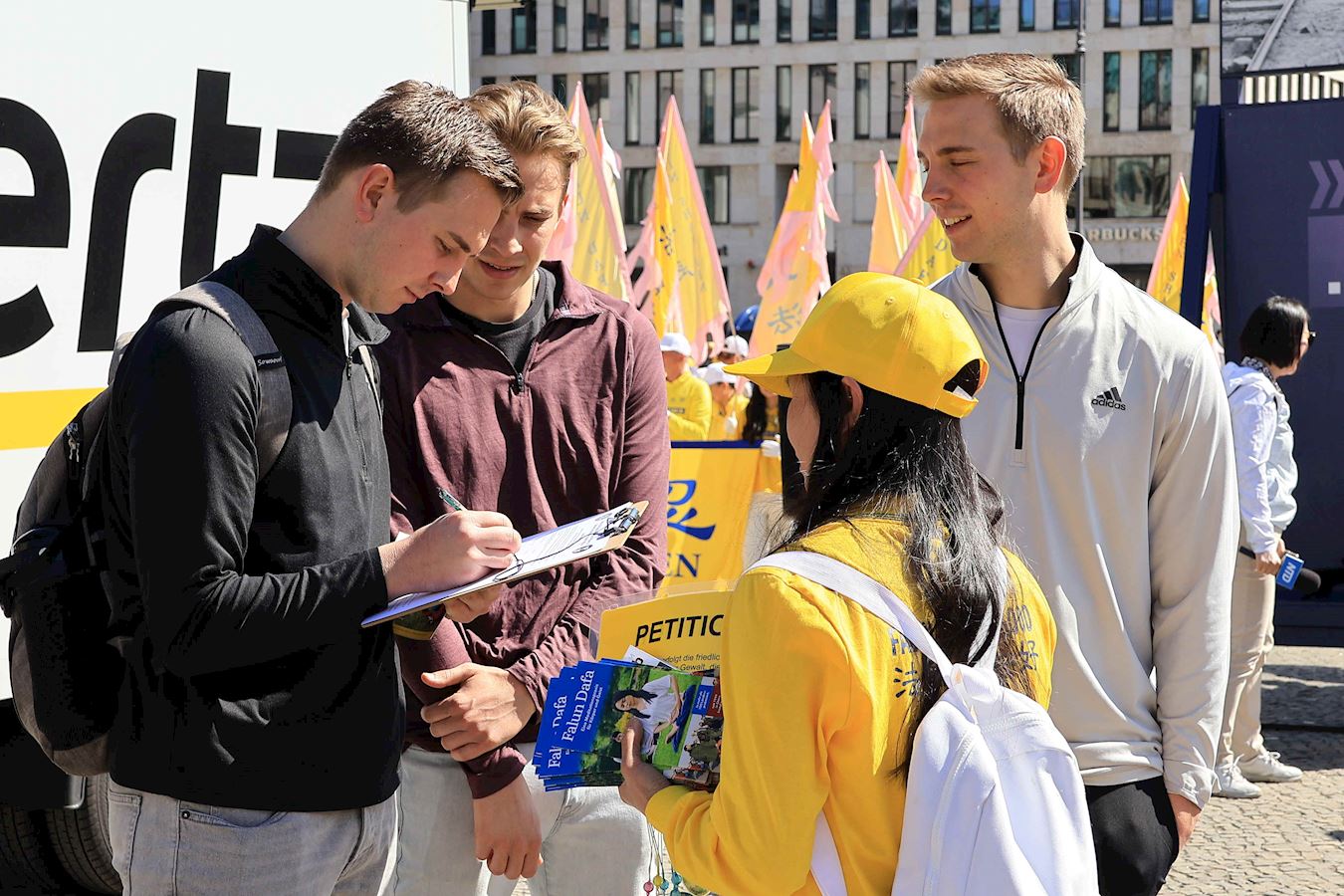 二零二五年五月九日及十日,为庆祝五月十三日世界法轮大法日举办的活动,德国和欧洲多国的法轮功学员走上柏林街头,告诉人们法轮大法弘传世界三十三年的故事,与他们分享修炼法轮大法及真善忍的美好,共同欢庆世界法轮大法日。