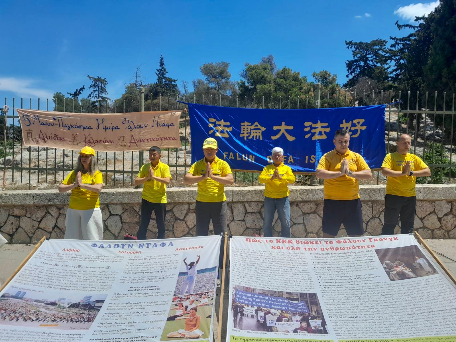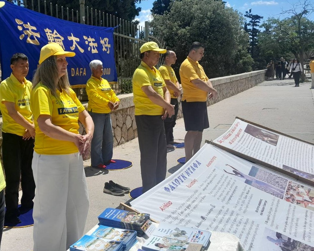 ![]() 图1~4: 希腊部分法轮功学员聚集在蒂西奥演示功法,并向过往的路人介绍法轮大法的美好。 |