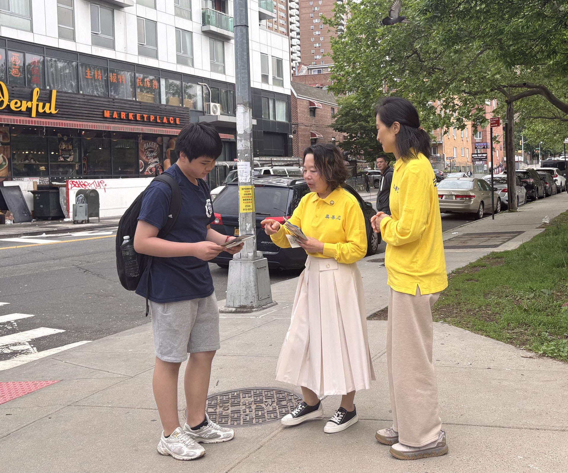纽约学员世界法轮大法日弘法 民众现场踊跃学炼