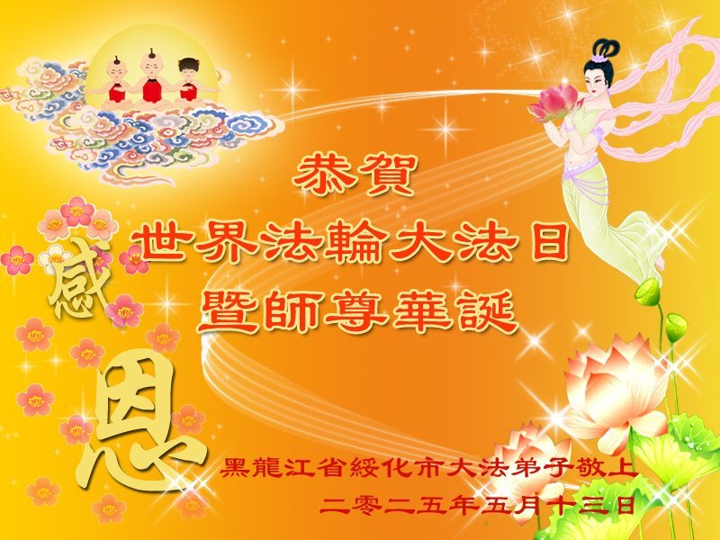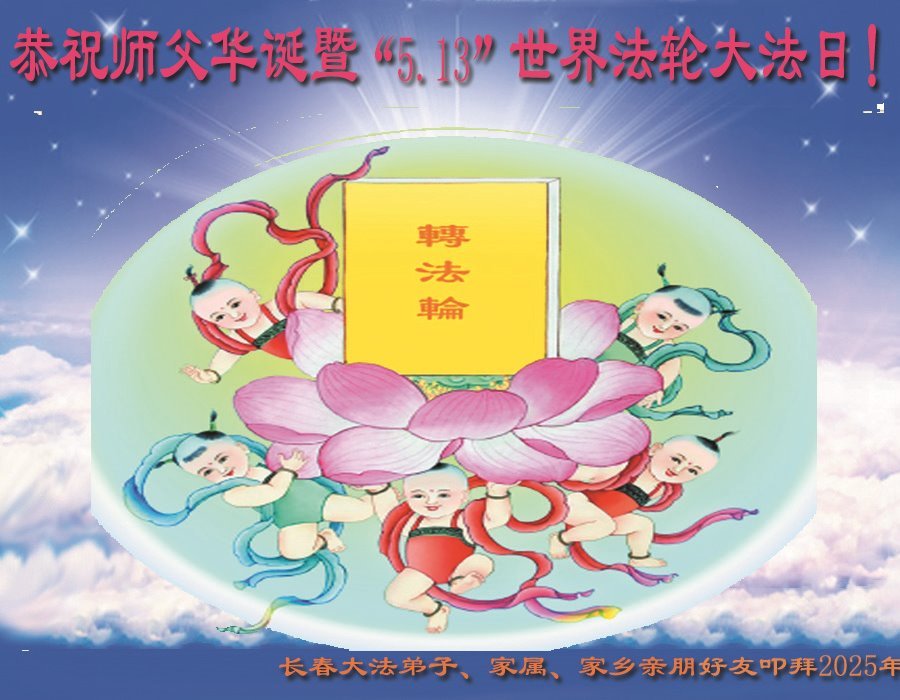 值此世界法轮大法日暨师父生日之时,我们家乡全体大法弟子,衷心恭祝慈悲伟大的师尊生日快乐!我们感恩师尊的慈悲救度之恩!