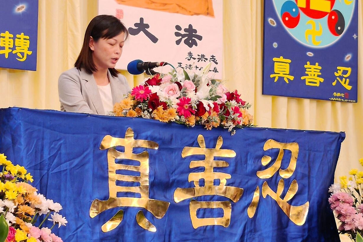 十七位法轮功学员在法会中发言,分享了各自在生活、工作、学习中修好自己、学好法、去执著,以及向世人弘扬传递法轮大法的美好和广传真相的修炼心得体会,他们朴实平和的交流感动着与会学员。