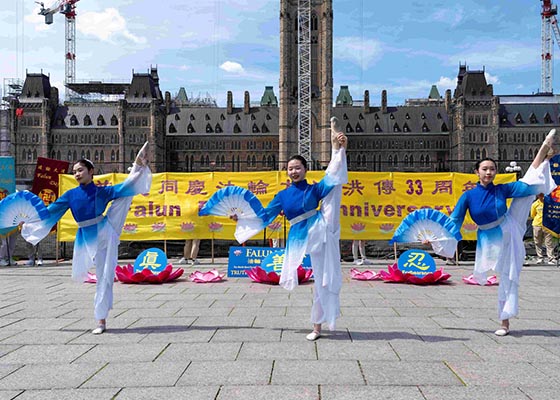 五月二十八日,来自加拿大东部的法轮功学员齐聚在加拿大首都渥太华的国会山庄前,共同庆祝法轮大法弘传世界33周年。