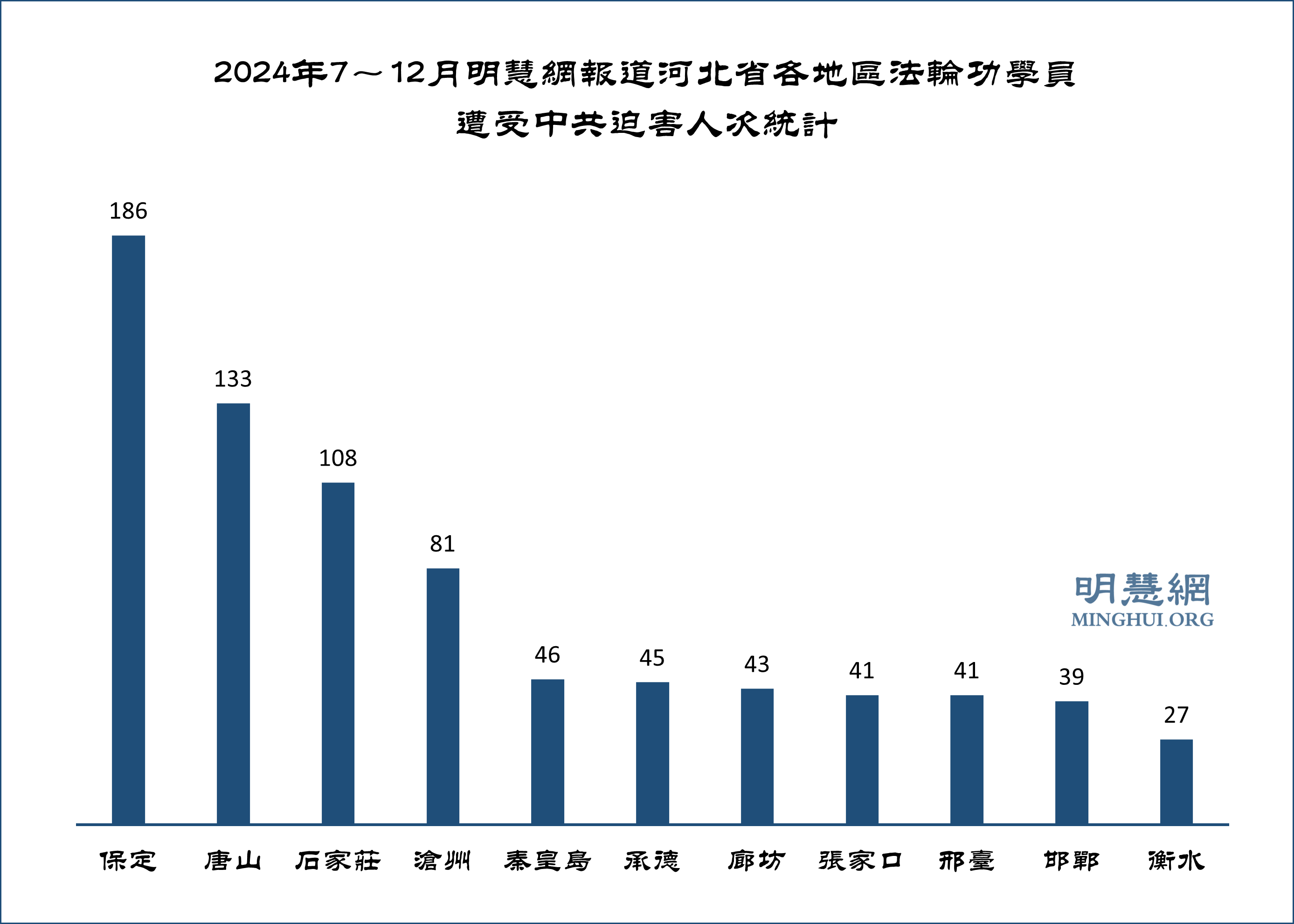 根据明慧网不完全统计,二零二四年下半年,河北省遭中共各种迫害的法轮功学员至少790人次。