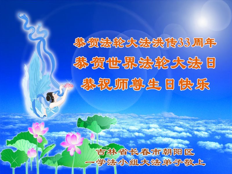 恭祝慈悲伟大的师尊生日快乐!恭贺世界法轮大法日!我在大法中身心受益,师父时时看护着我,感到了大法的洪恩。