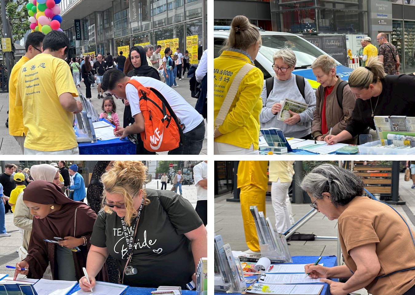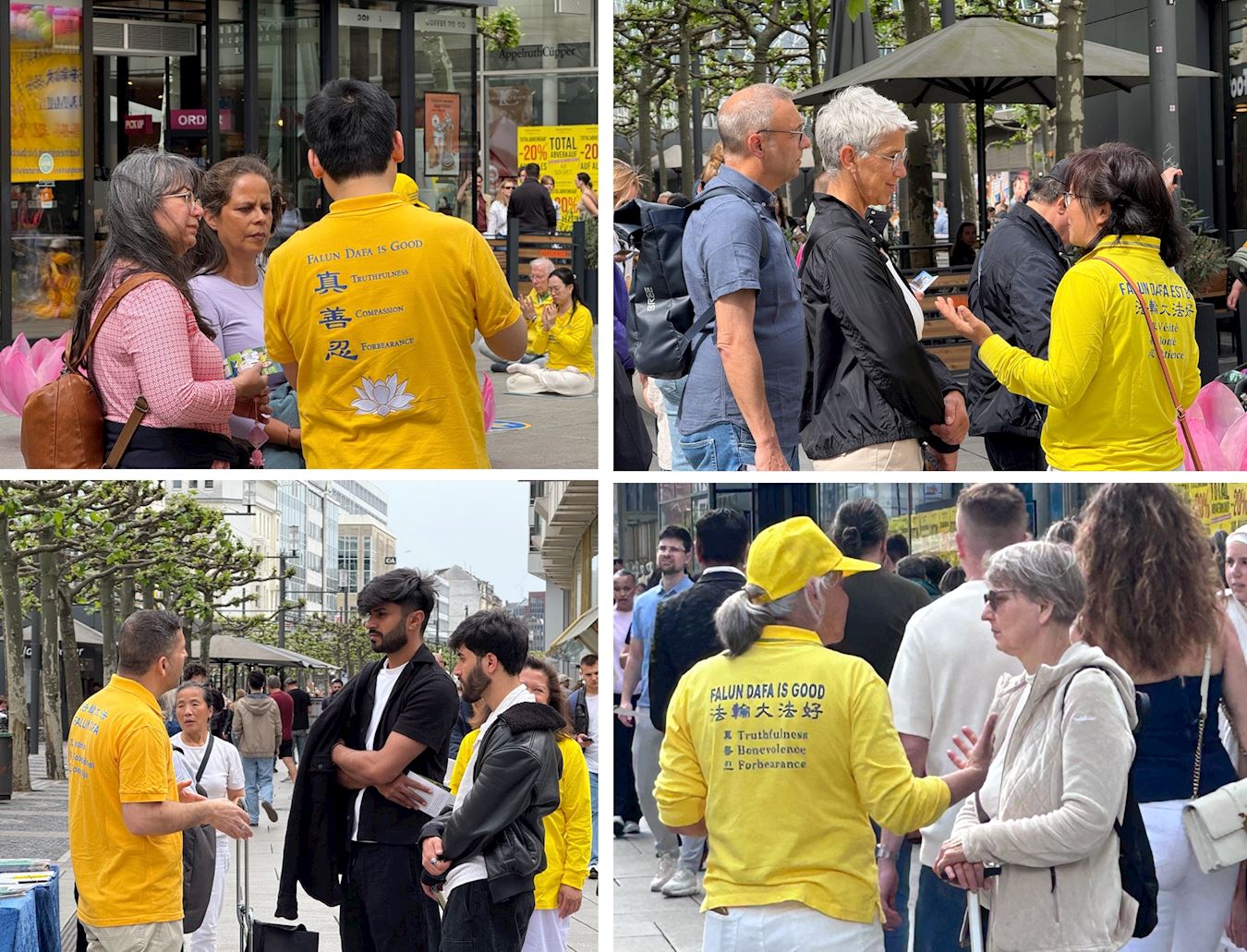 二零二五年五月三日,法轮功学员在德国金融中心法兰克福采尔大街(Zeil)举办大型集会活动,庆祝第二十六届世界法轮大法日和法轮大法弘传世界三十三周年,恭祝法轮功创始人李洪志师尊华诞。德国黑森州四位政要发来贺信支持。