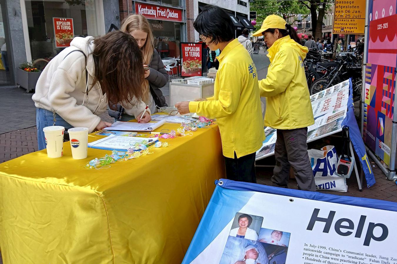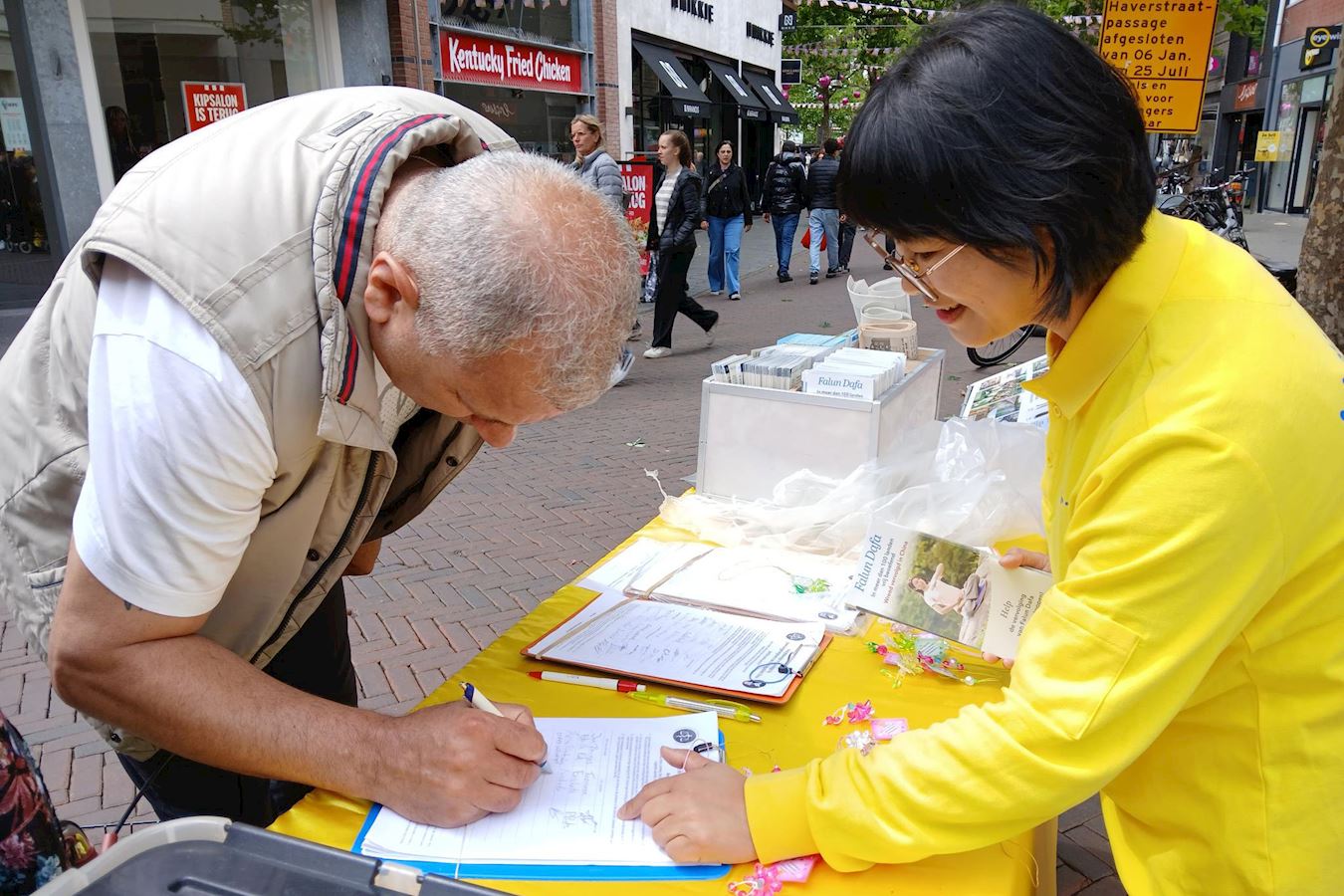 刘女士,是在香港出生,在荷兰长大的华人,她跟男朋友一起逛街遇见法轮功真相点,在听闻学员讲述中共对法轮功学员的迫害尤其是活摘器官的罪行后,她希望能帮助制止这些迫害,她说:“共产党用恐惧、暴力强迫人们服从,我认为这是不正确的方式,共产党在香港也是如此用暴力来实现他们的统治。”