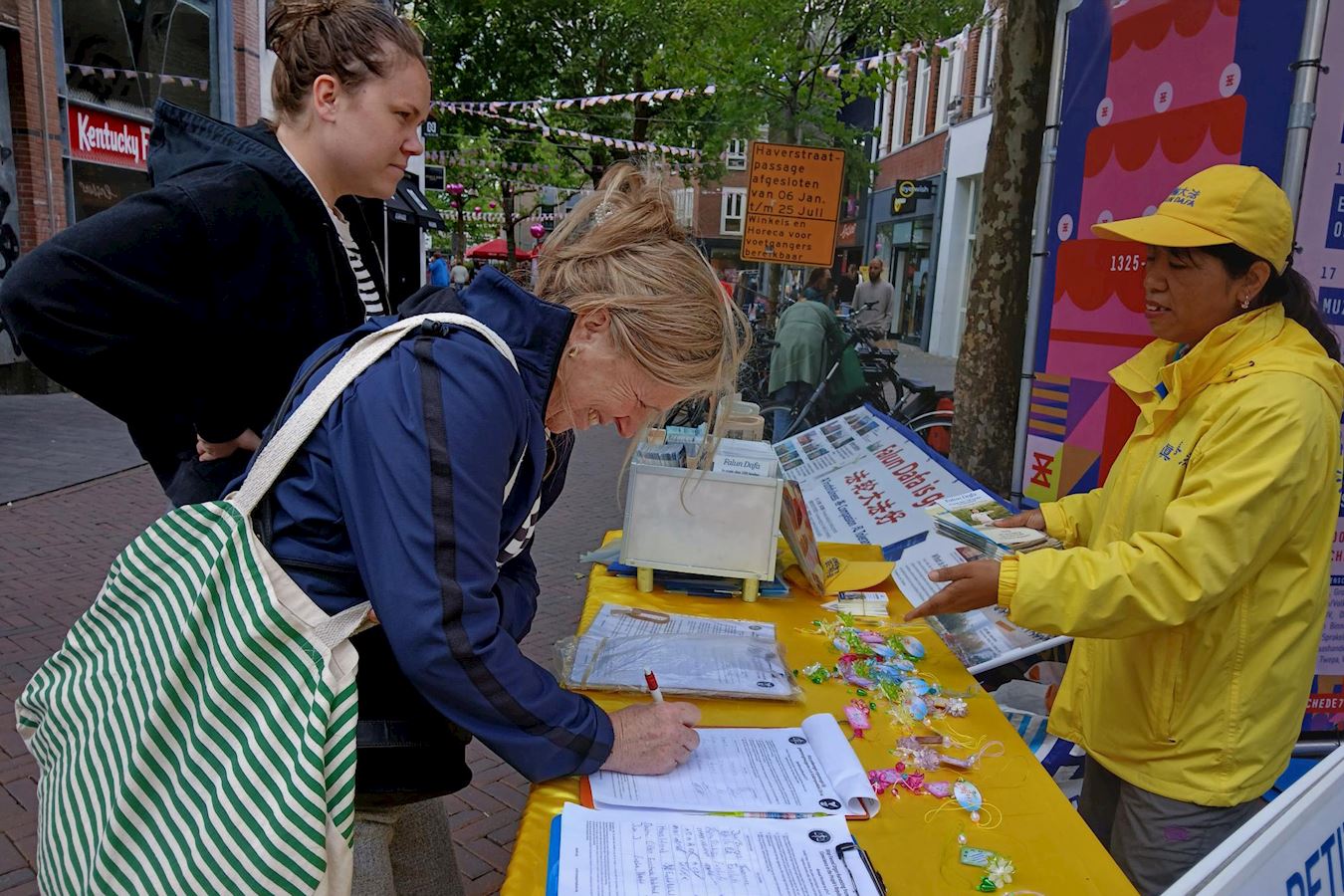 荷兰女士法比恩(Fabienne)在反对活摘器官的征签表上签名后表示:“我为在中国发生的这些事情感到难过,中国还有北朝鲜这些国家,有很多可怕的事情发生,为了钱,为了利益。我们应该保护善良的人(免受这些迫害),希望你们成功!