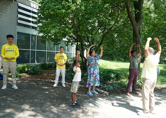 费城图书馆邀请法轮功学员做功法演示
