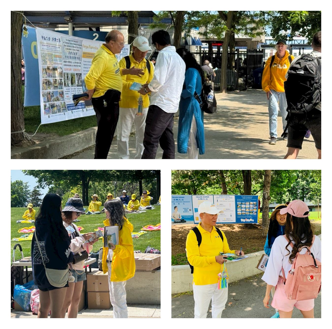 ![]() 图3~4:多伦多的法轮功学员们在码头广场公园(Harbour Square Park)的大草坪上炼功、讲真相和征签。 |