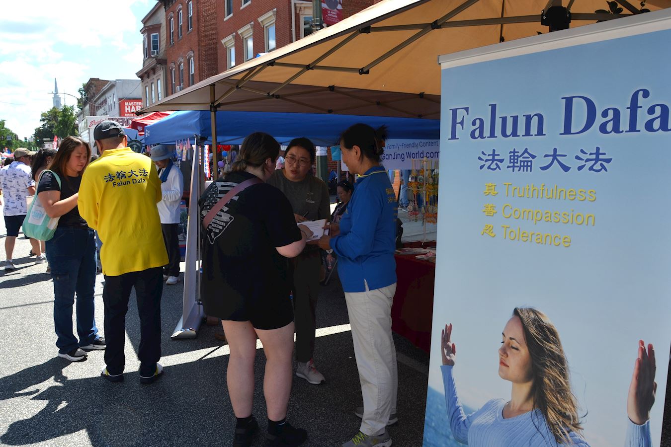 二零二五年六月十四日,宾州费城西郊乌奇兰小镇(Upper Uwchlan)举办了第15届社区节(block party),数十家摊位吸引了众多当地民众。法轮功学员也利用这个机会与社区分享修炼后身心受益的喜悦,并讲述了在中国大陆发生的迫害。