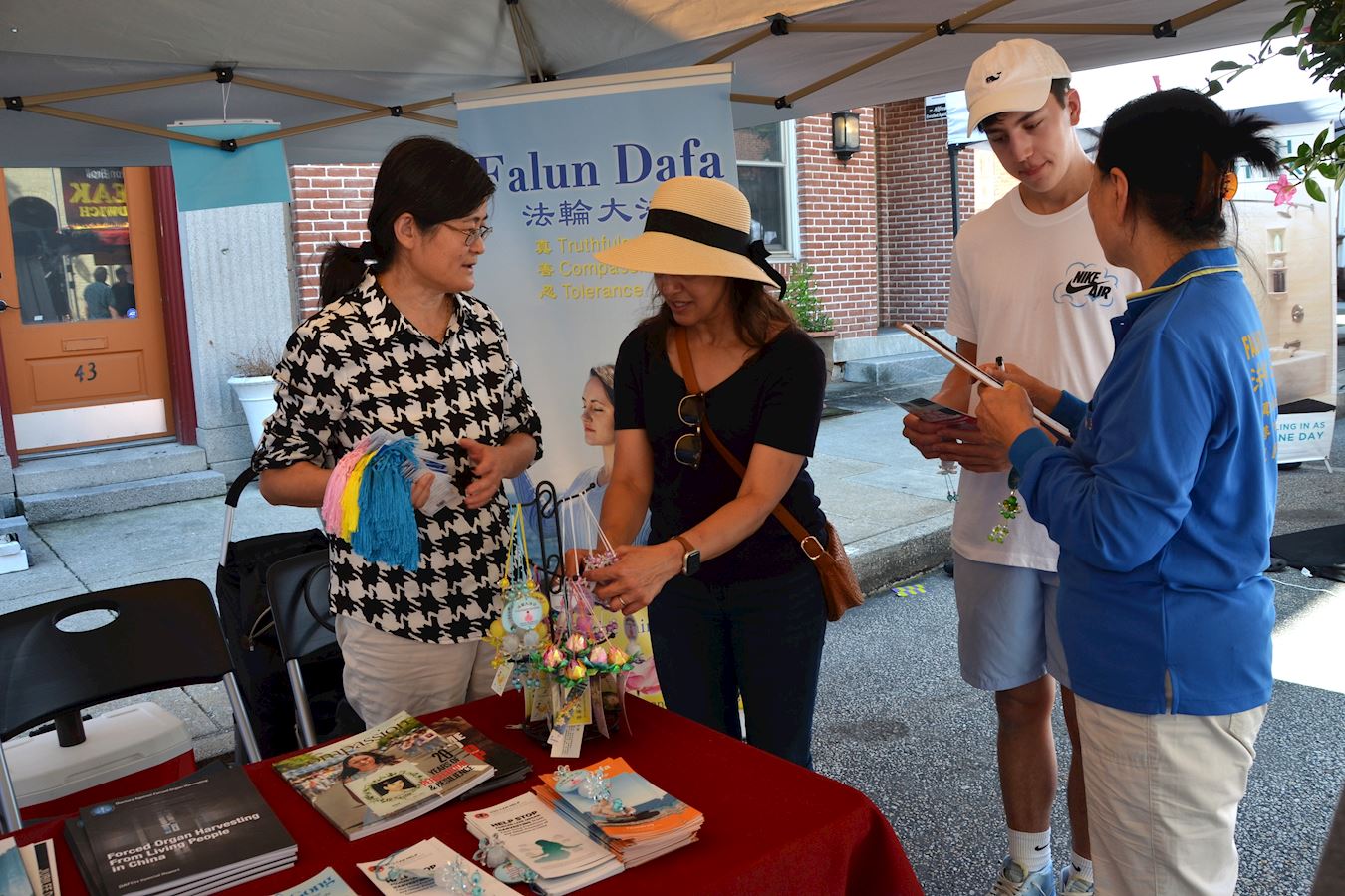 在禧年日节日气氛中,法轮大法学员的摊位引起了人们关注中共迫害信仰的问题。