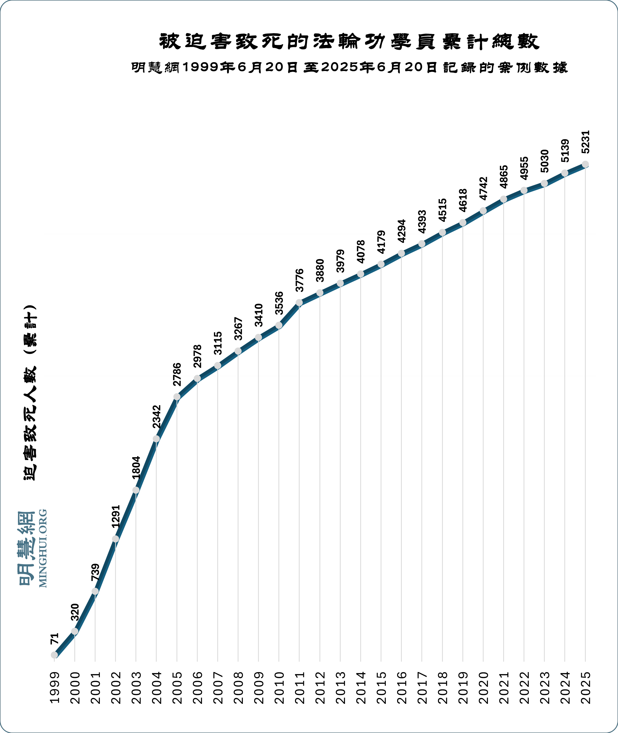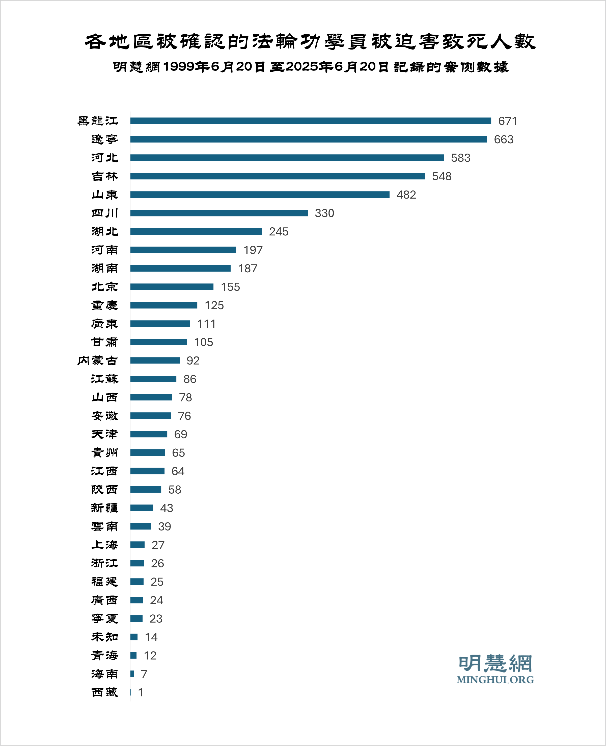 一、26年被迫害致死的法轮功学员累计总数(无法查证姓名身源者未统计在内):