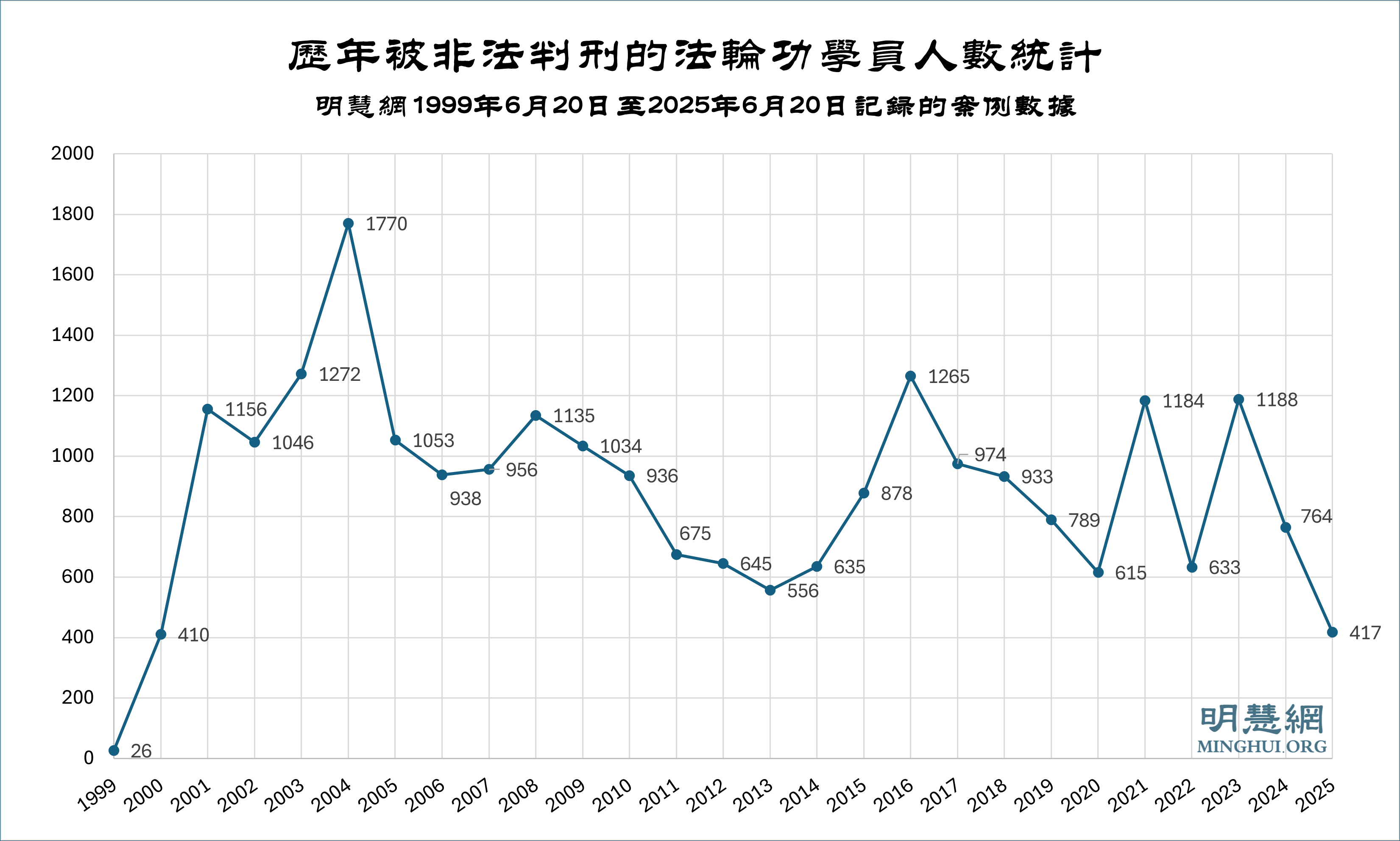三、26年来历年被非法判刑的法轮功学员人数统计(未报道出来的案例没有计入在内):