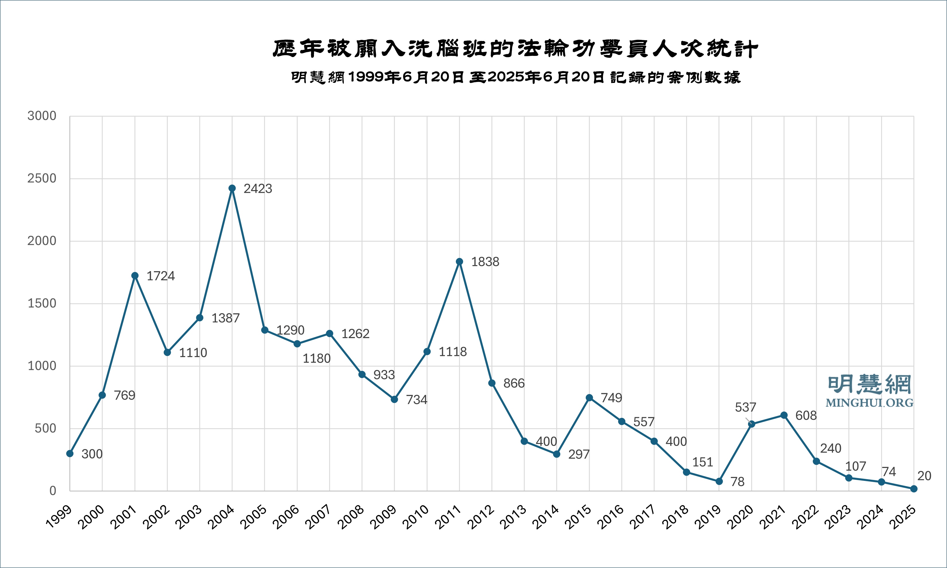 九、历年被关入洗脑班的法轮功学员人次统计(未报道出来的案例没有计入在内):