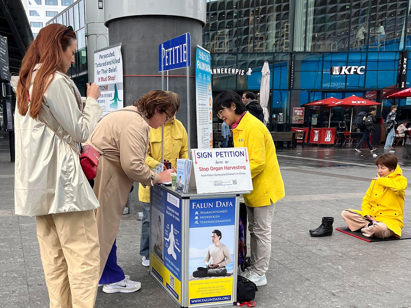 他们说:“我们觉得这是非常悲惨和可怕的!希望更多的人知道在中国发生的事,他们(中共)应该停止。人们应该享有自由。在荷兰,我们享有这种(信仰的)自由,但在中国,法轮功学员因此被杀害。”
