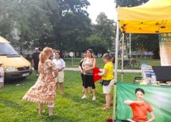 六月二十二日,一年一度的多元文化节在德国亚琛市的肯尼迪公园举行。应主办方邀请,法轮功学员参加了此次活动,并设立了信息展位。