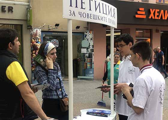 保加利亚法轮功学员5月24日在普罗夫迪夫中心举行了信息日活动,他们向民众分发传单,展示大法修炼的美好,征集签名制止中共的迫害。