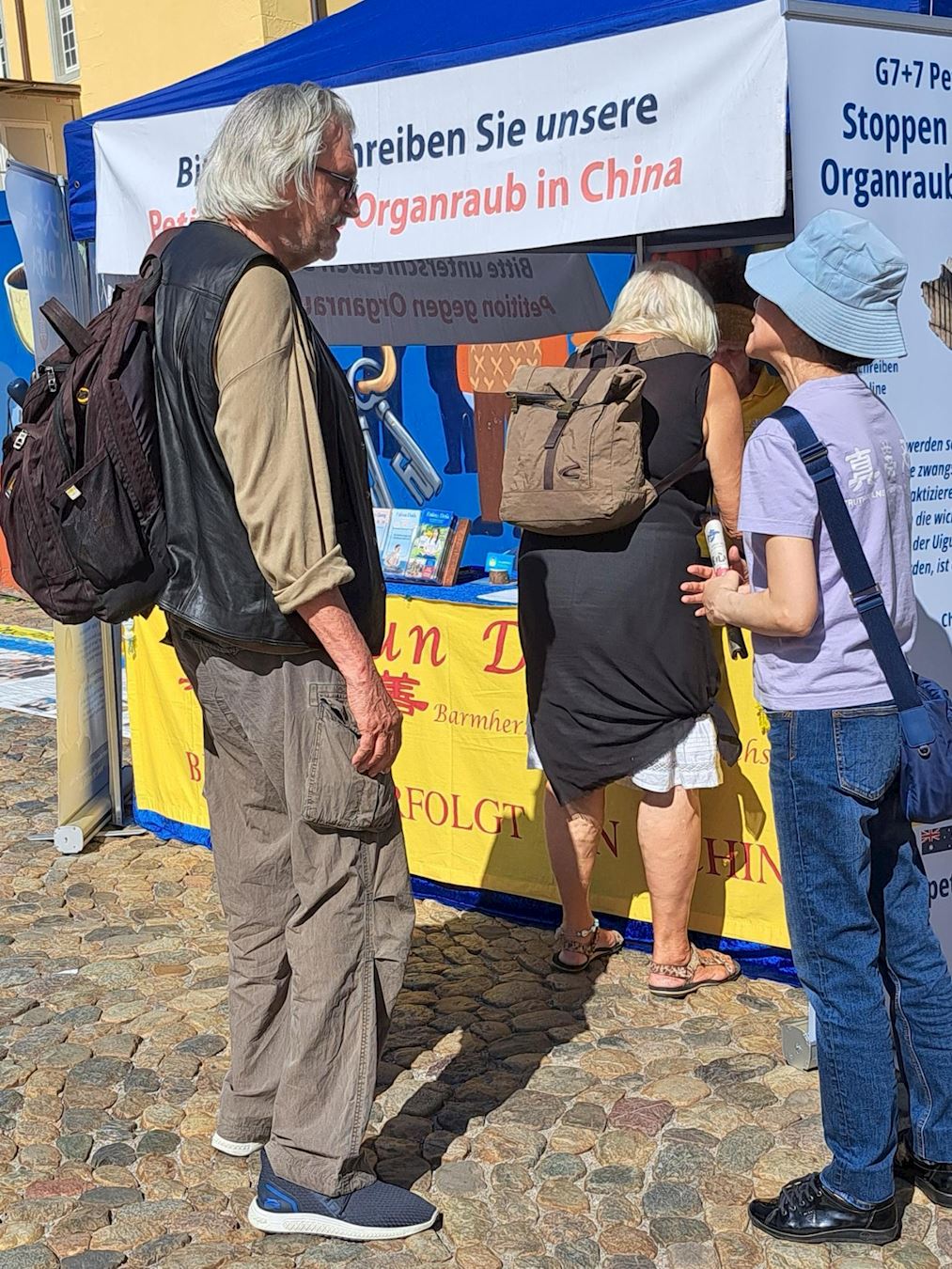 【明慧网二零二五年六月五日】(明慧德国记者站报道)二零二五年五月三十一日,来自德国与法国的法轮功学员在德国弗莱登堡(Freiburg)商业中心奥古斯汀广场(Augustiner Platz)举行了信息日活动。学员通过功法展示、发放传单、与路人交谈的方式,向来往民众展示了法轮功的美好,揭露中共迫害法轮功的真相。