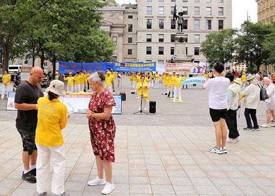 6月29日,蒙特利尔部分法轮功学员在老城兵器广场举行集会,声援4.4亿人退出中共党团队组织,同时让更多民众了解中共反人类的本质。