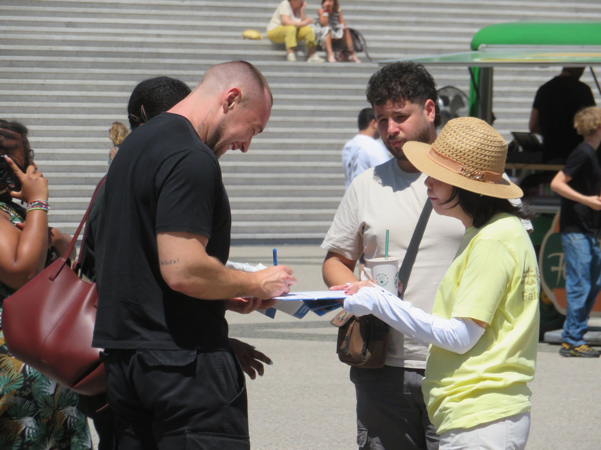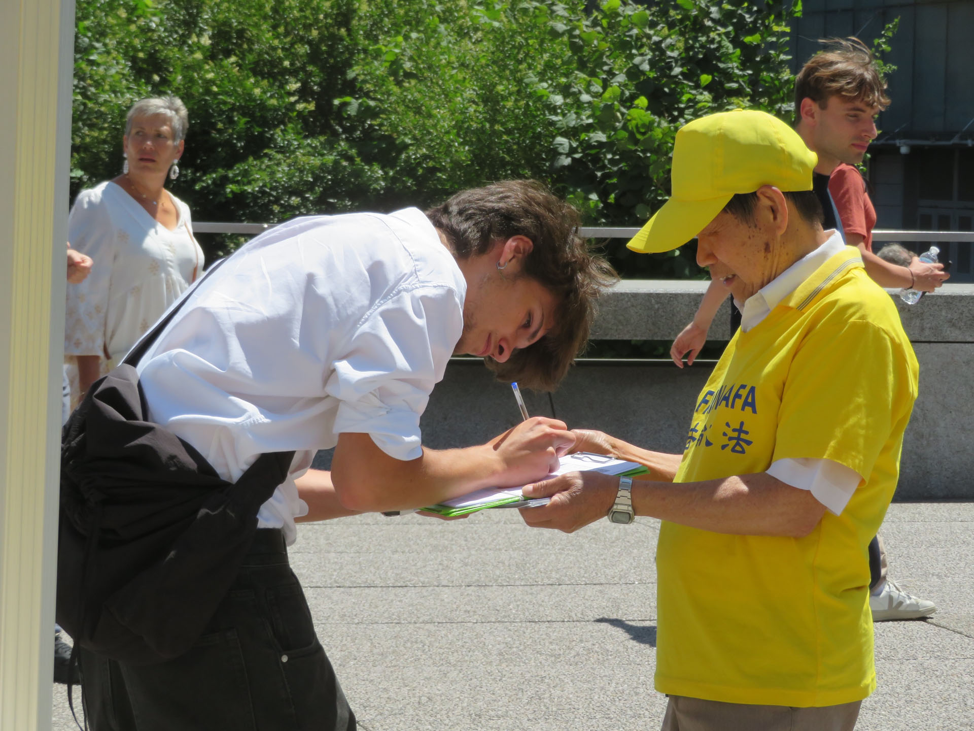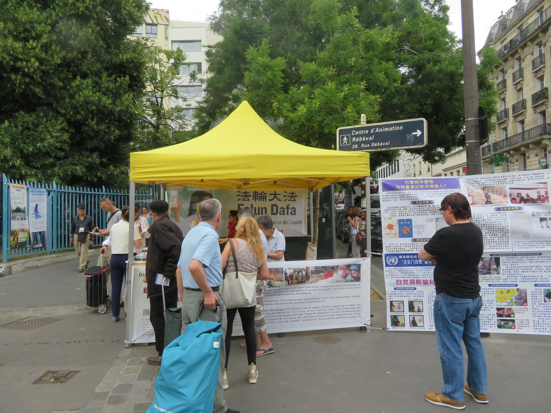 包括唐人街在内的美丽城(Belleville)是个多种族的地区。法轮功学员的活动吸引了丹尼斯·让松(Denis Jeanson)的驻足。他是一名摄影师和艺术画家,对发生在中国的对法轮功学员强摘器官的行径,他说:“这真是一个丑闻。”他认为,在中国,还有其它许多问题。他说:“在中国,他们(政府)什么都不说,任由事情(迫害)发展。因为他们害怕。”