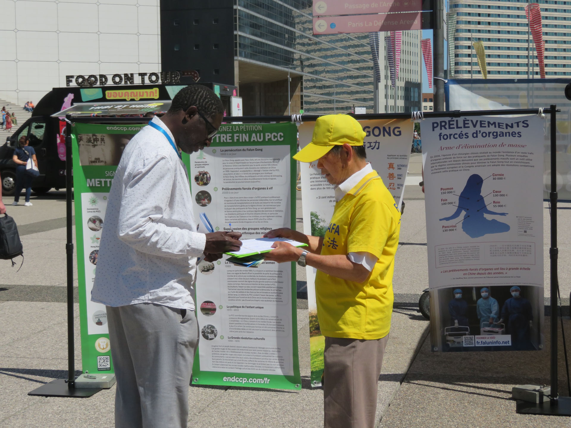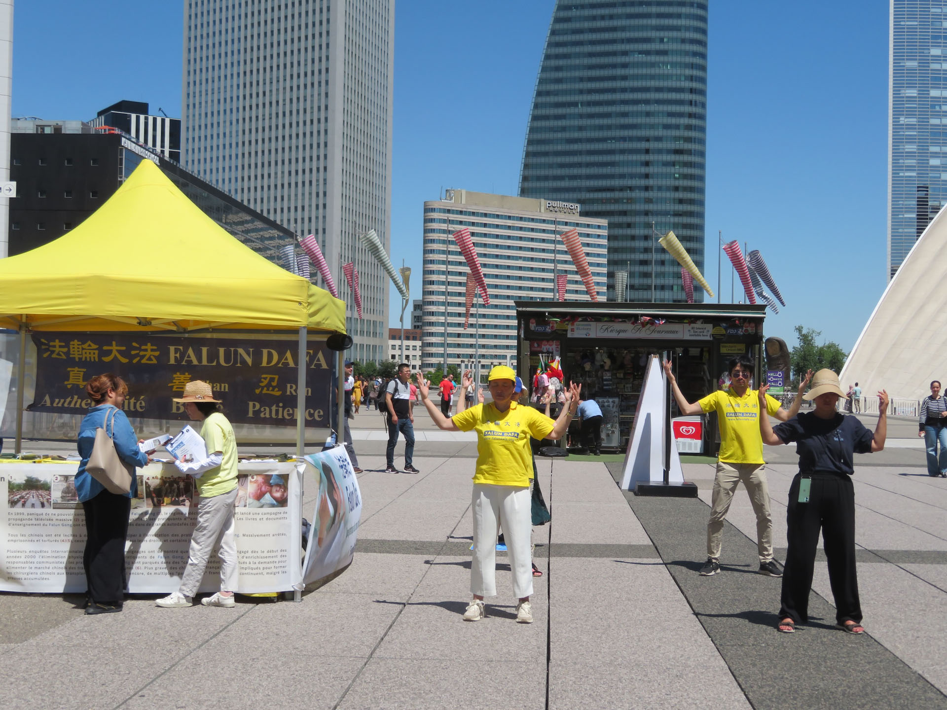 六月二十七日星期五,在巴黎金融中心拉德芳斯,法轮功学员举办了信息日活动。拉德芳斯是法国巴黎都会区首要的中心商务区,拥有巴黎都会区中最多的摩天大厦。