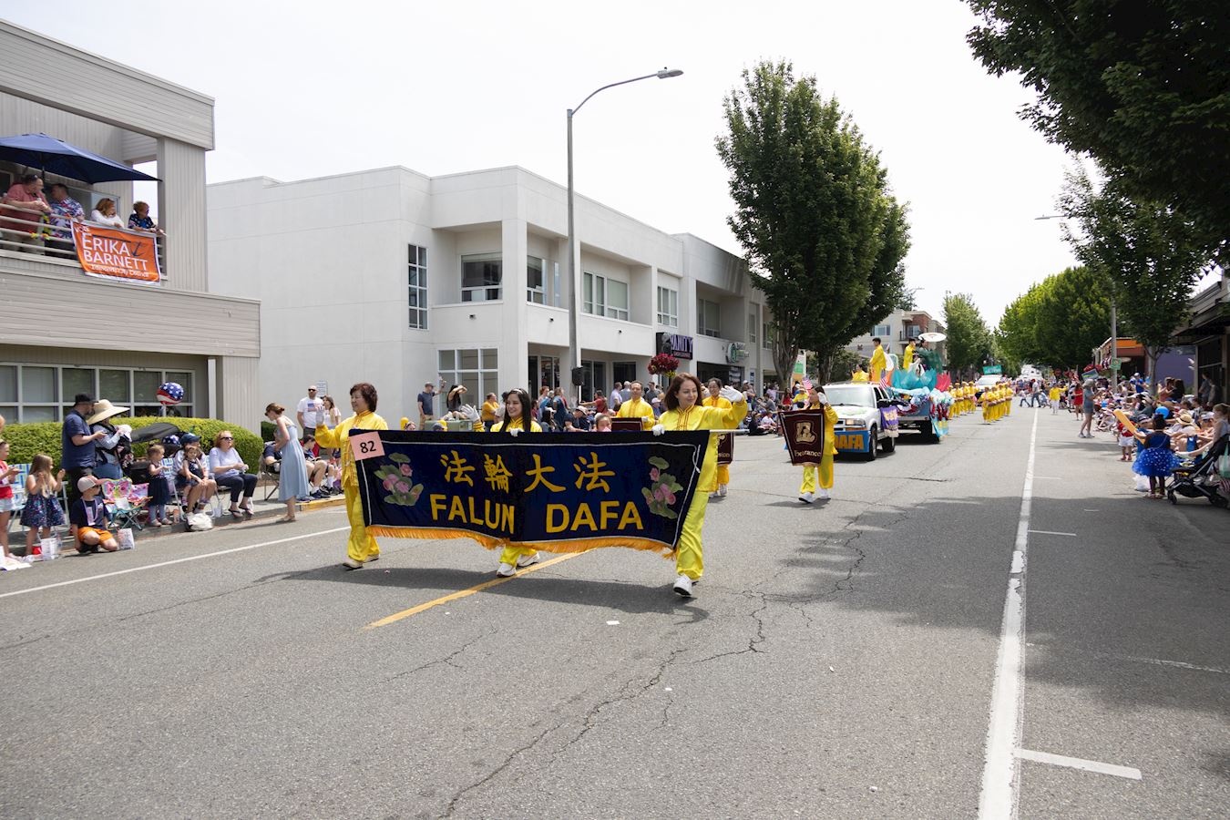 ![]() 图1~7:美国西雅图法轮功学员在埃德蒙兹市的独立日游行上展现的花车和腰鼓队 |